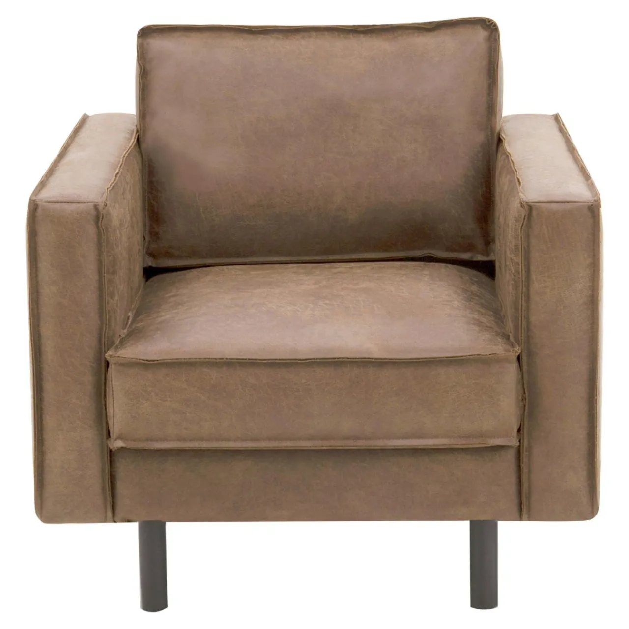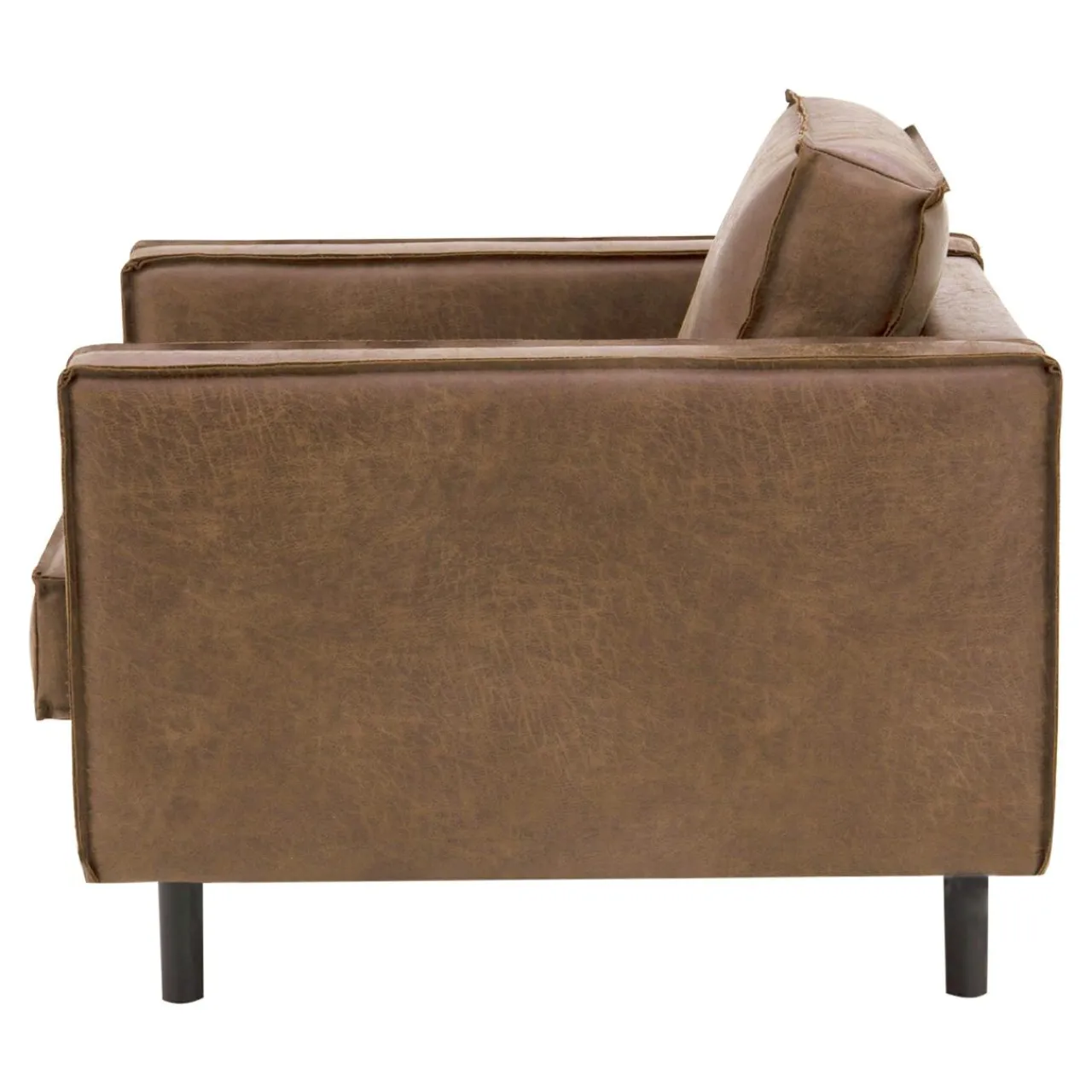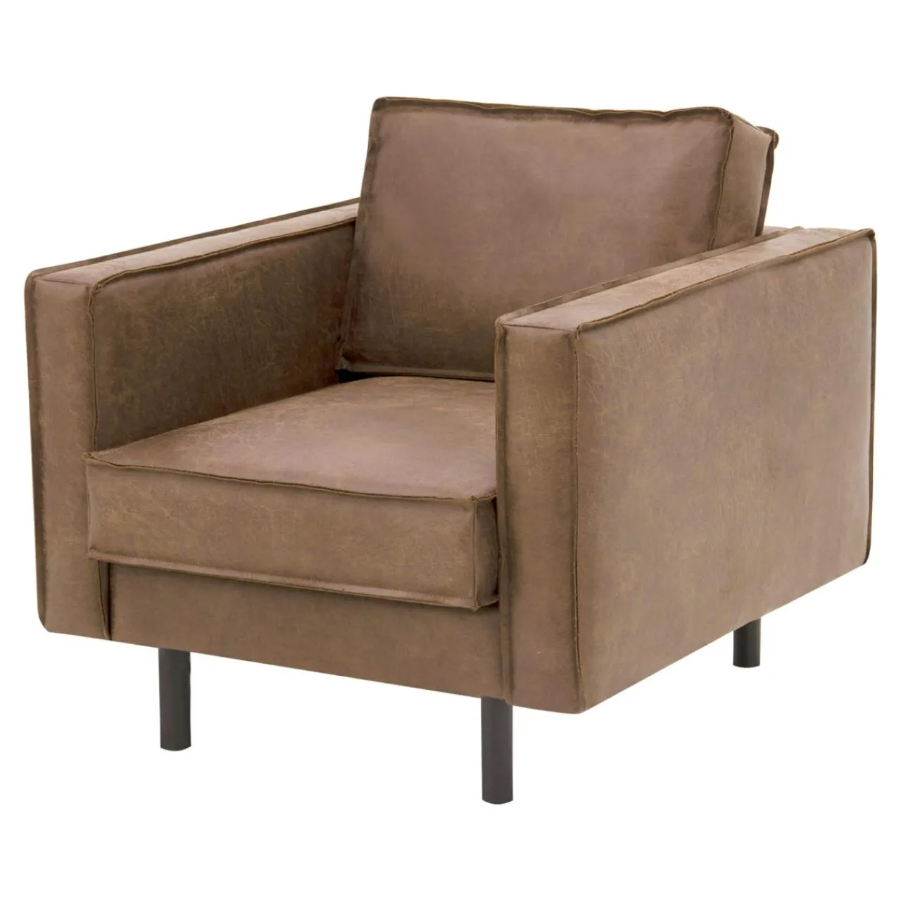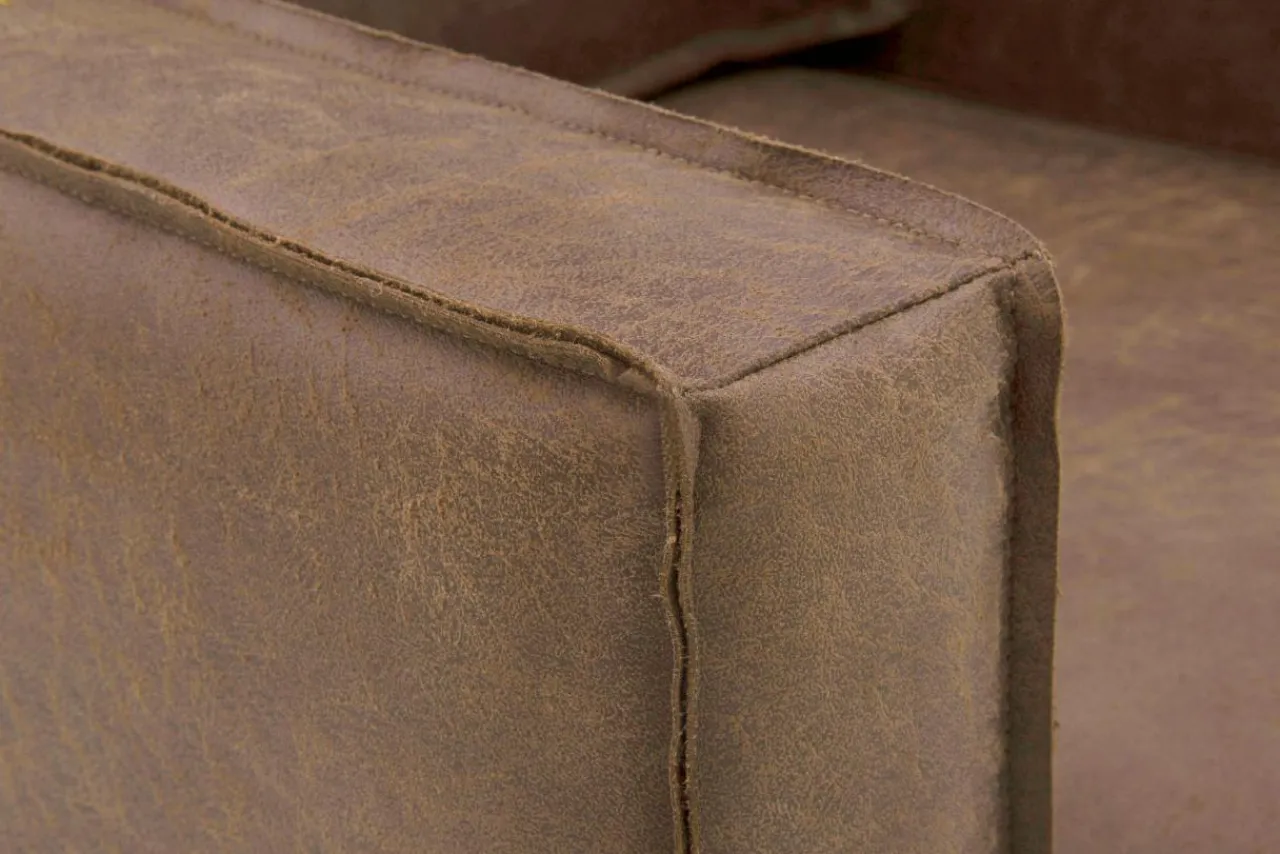 - Tkanina, którą pokryto fotel, imituje fakturę prawdziwej skóry, co podkreśla naturę stylu industrialnego.