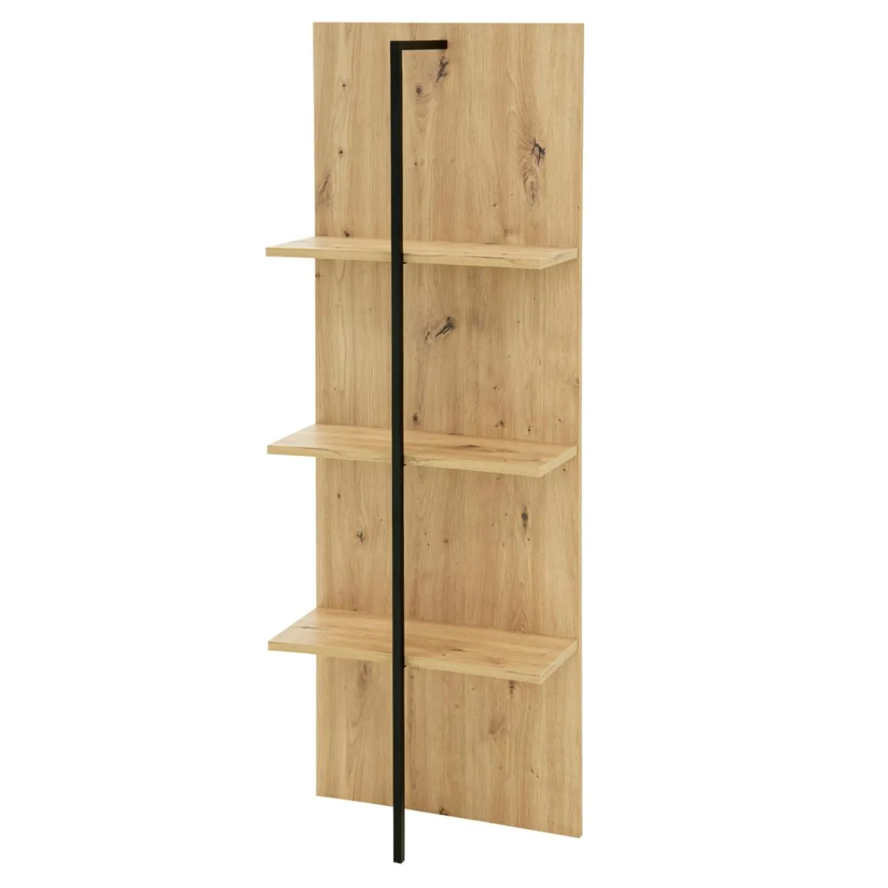Nadstawka z półkami SOFIA to uzupełniane mebli z tej samej kolekcji. Na 3 pojemnych półkach wyeksponujesz dekoracje, książki lub ulubione zdjęcia. Wybarwienie w kolorze dąb artisan w połączeniu z metalowymi wstawkami – pozwoli wkomponować ją we wnętrza urządzone w industrialnym stylu.
