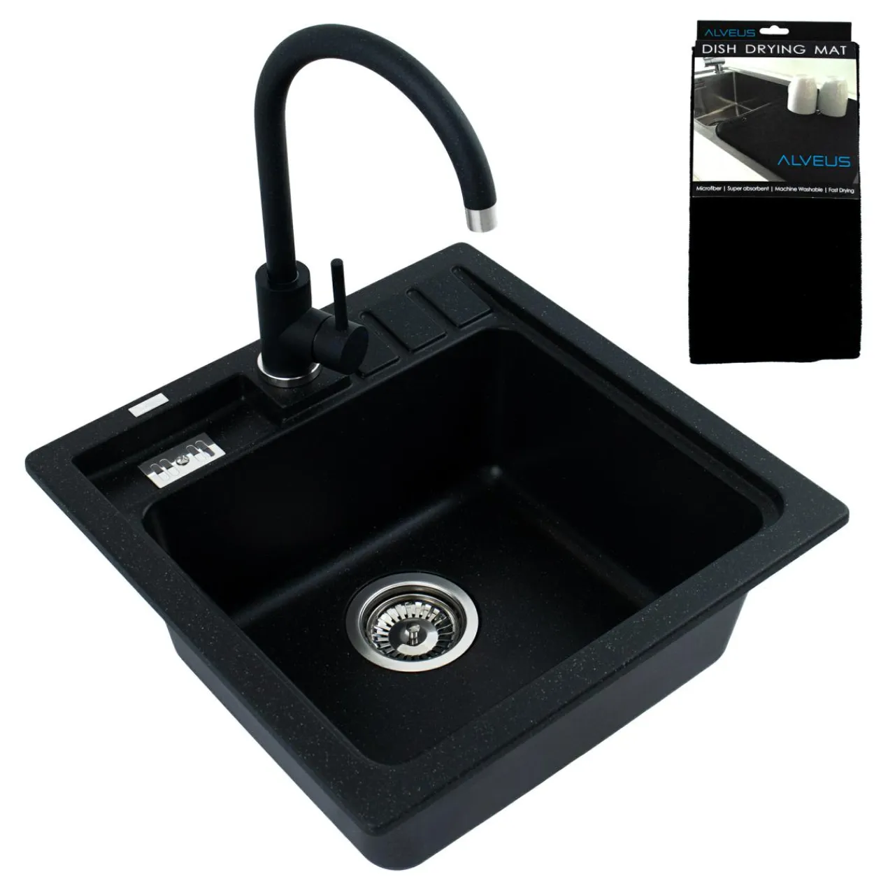Zlewozmywak ASPEN 20 z dołączoną baterią i matą ociekową to komplet, który pasuje do kameralnego wnętrza kuchni.