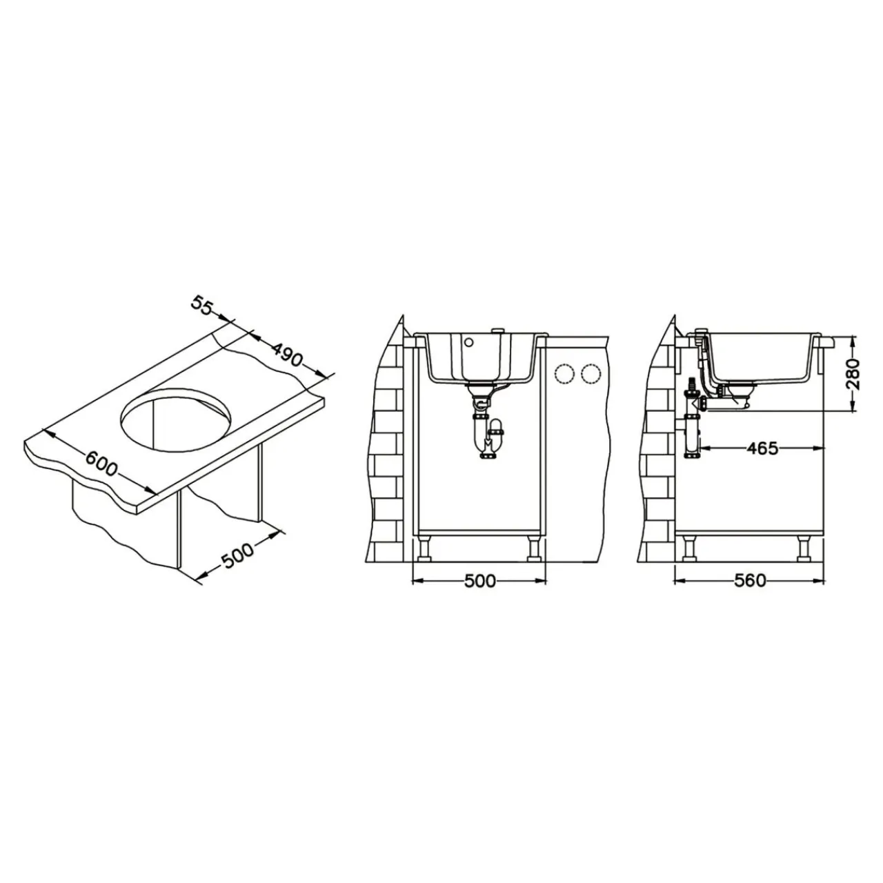 Okrągły, jednokomorowy model ASPEN 10 przeznaczony został pod szafkę o minimalnej szerokości 50 cm. Posiada fabrycznie wykonane otwory ø35 mm na baterię i korek typu POP-UP. Do zlewozmywaka jest również dołączony syfon typu Safe Space. Odpływ – Ø 114 mm.