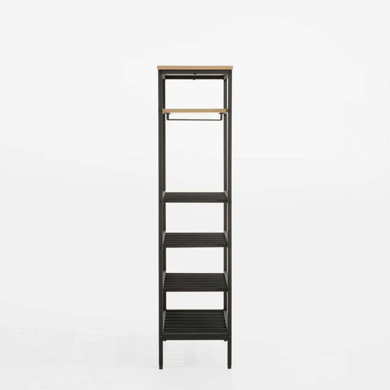 - Styl industrialny – połączenie metalu i dębowy kolor nadaje regałowi nowoczesny, szykowny charakter.