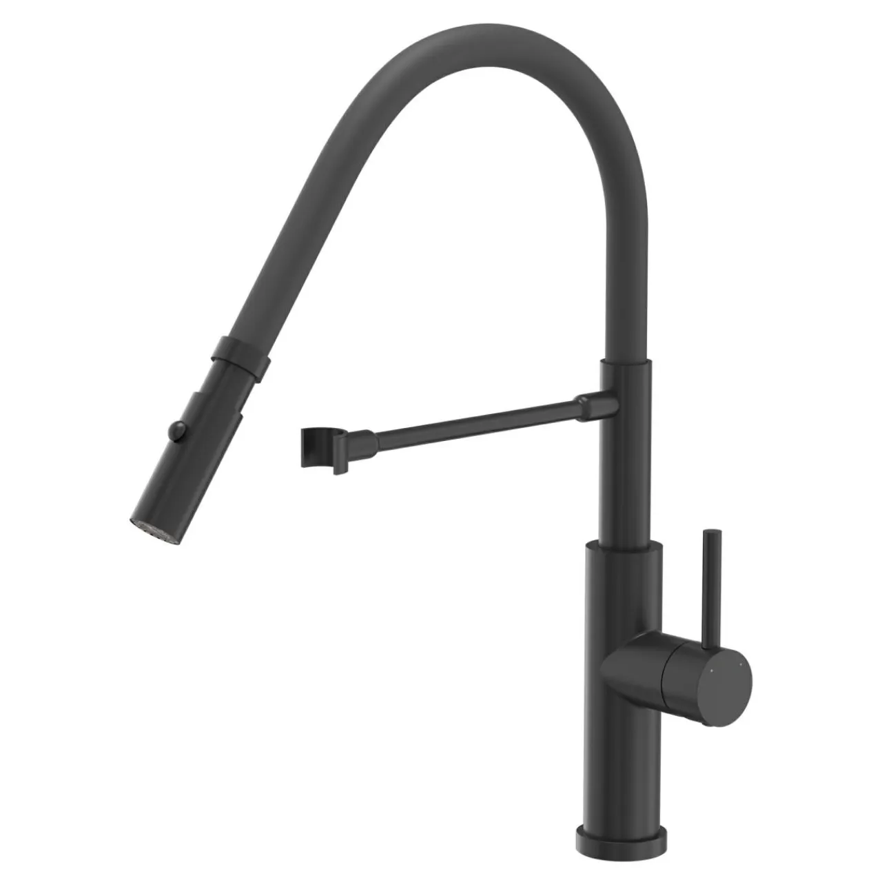 Przełącznik funkcji „prysznic” znajduje się przy wylocie wylewki. Jest ona wykonana z giętkiego tworzywa, co pozwala wygodnie nią poruszać.