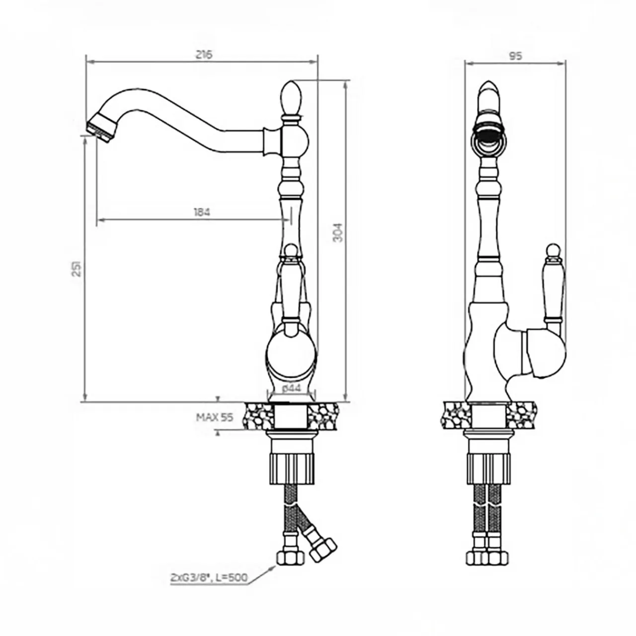 - Wykonanie z mosiądzu – zapewnia trwałość i odporność na korozję.