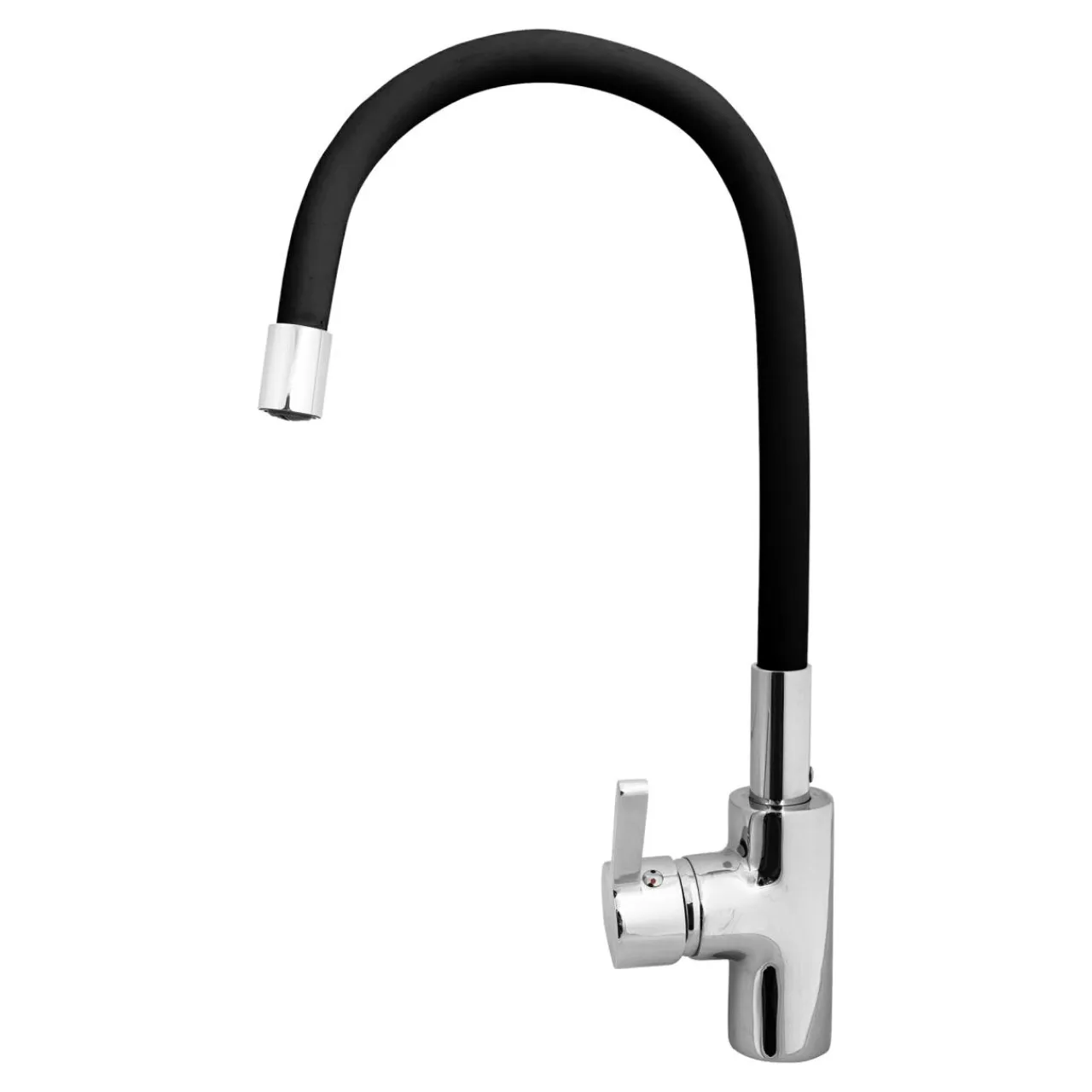- Na uwagę zasługuje jej elastyczna szyjka, którą możesz swobodnie wyginać na wszystkie strony, bez obaw o ewentualne pęknięcia i inne uszkodzenia. Dzięki temu rozwiązaniu oraz obrotowej głowicy możesz domyć naczynia nawet w trudno dostępnych miejscach, kierując na nie bezpośrednio strumień wody.