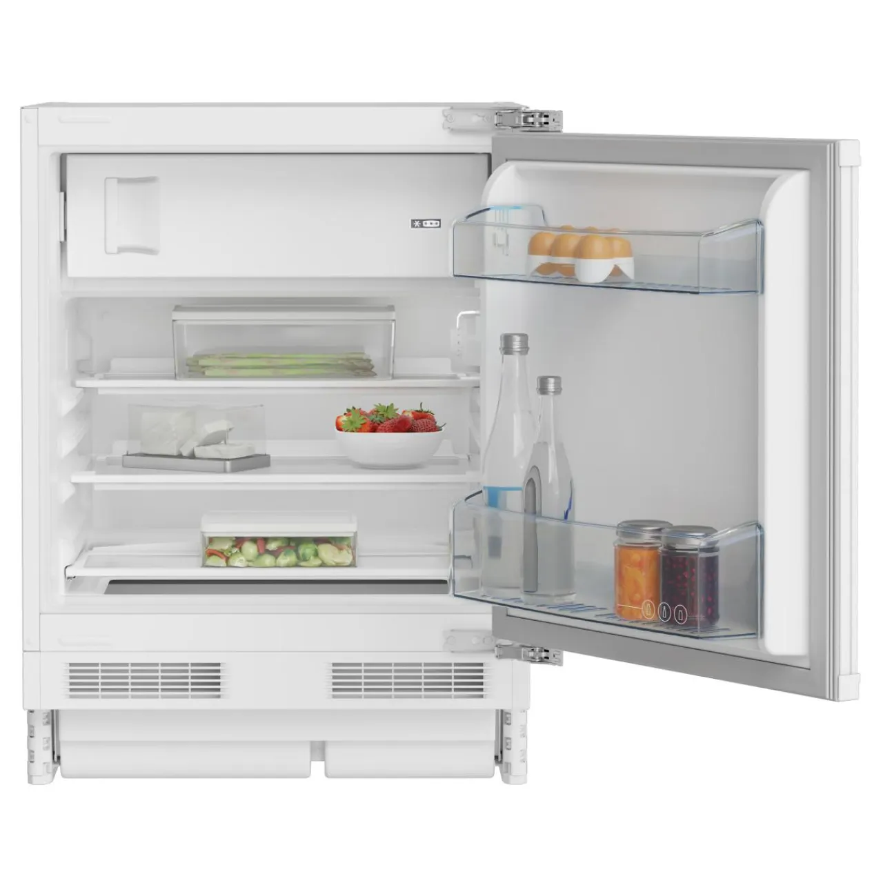 Model lodówki BU1154HCN od BEKO posiada 3 półki w części chłodzącej i 2 balkoniki na drzwiach.