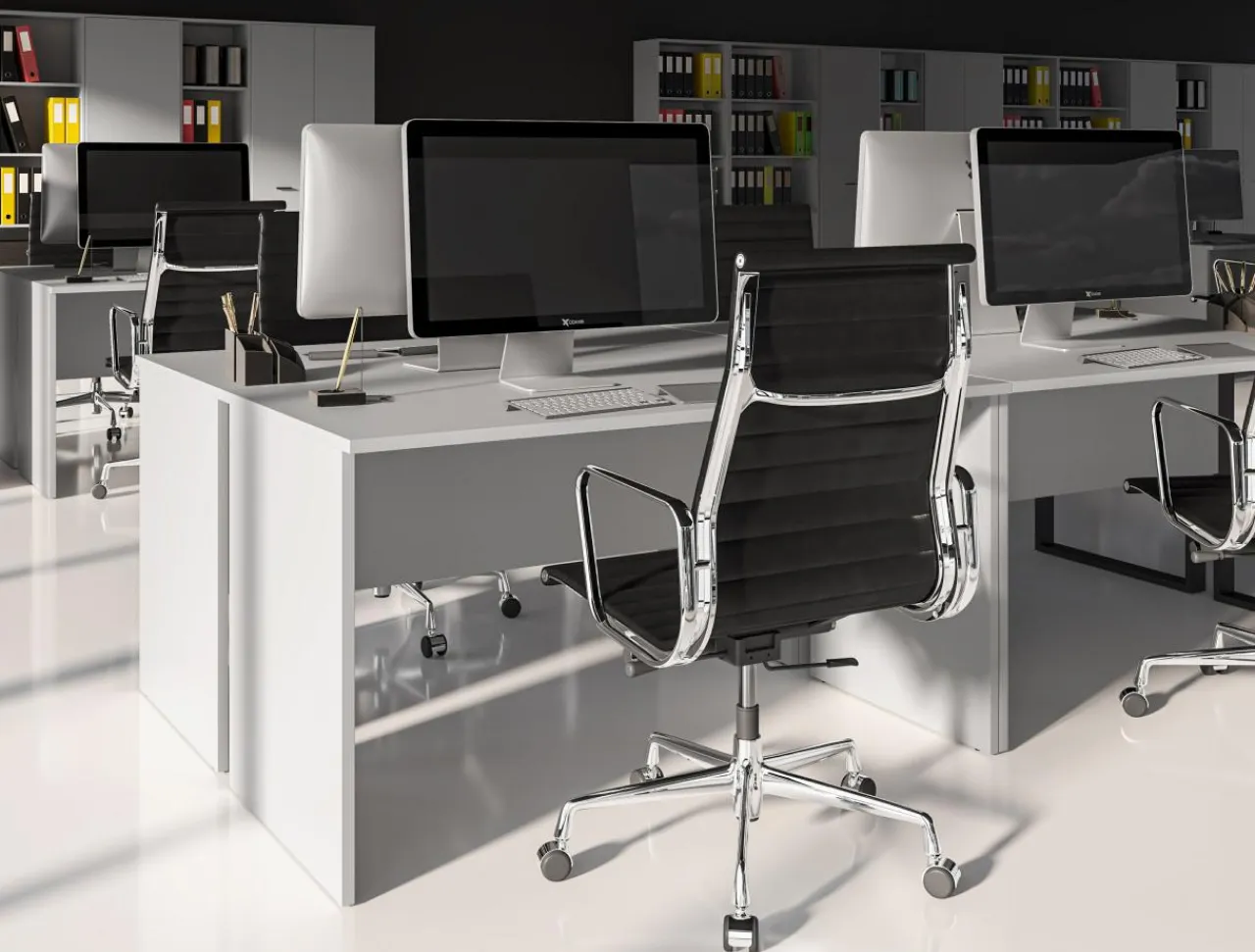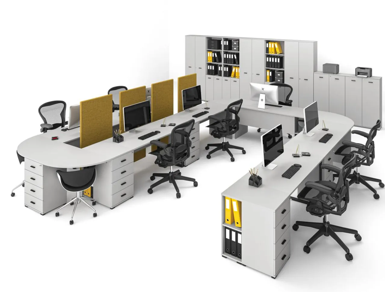 - Dostawki w formie szafek i blatów biurek dopełnią meble, tworząc nowoczesne miejsce pracy.