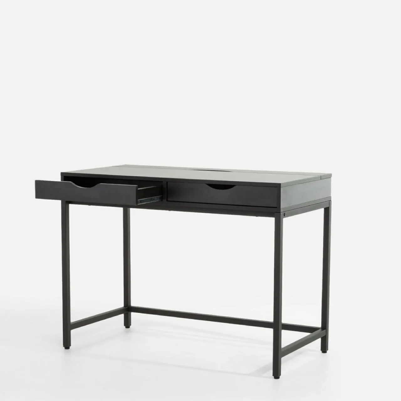 - Czarny kolor – elegancka barwa sprawia, że biurko świetnie wpisuje się w nowoczesne aranżacje wnętrz.