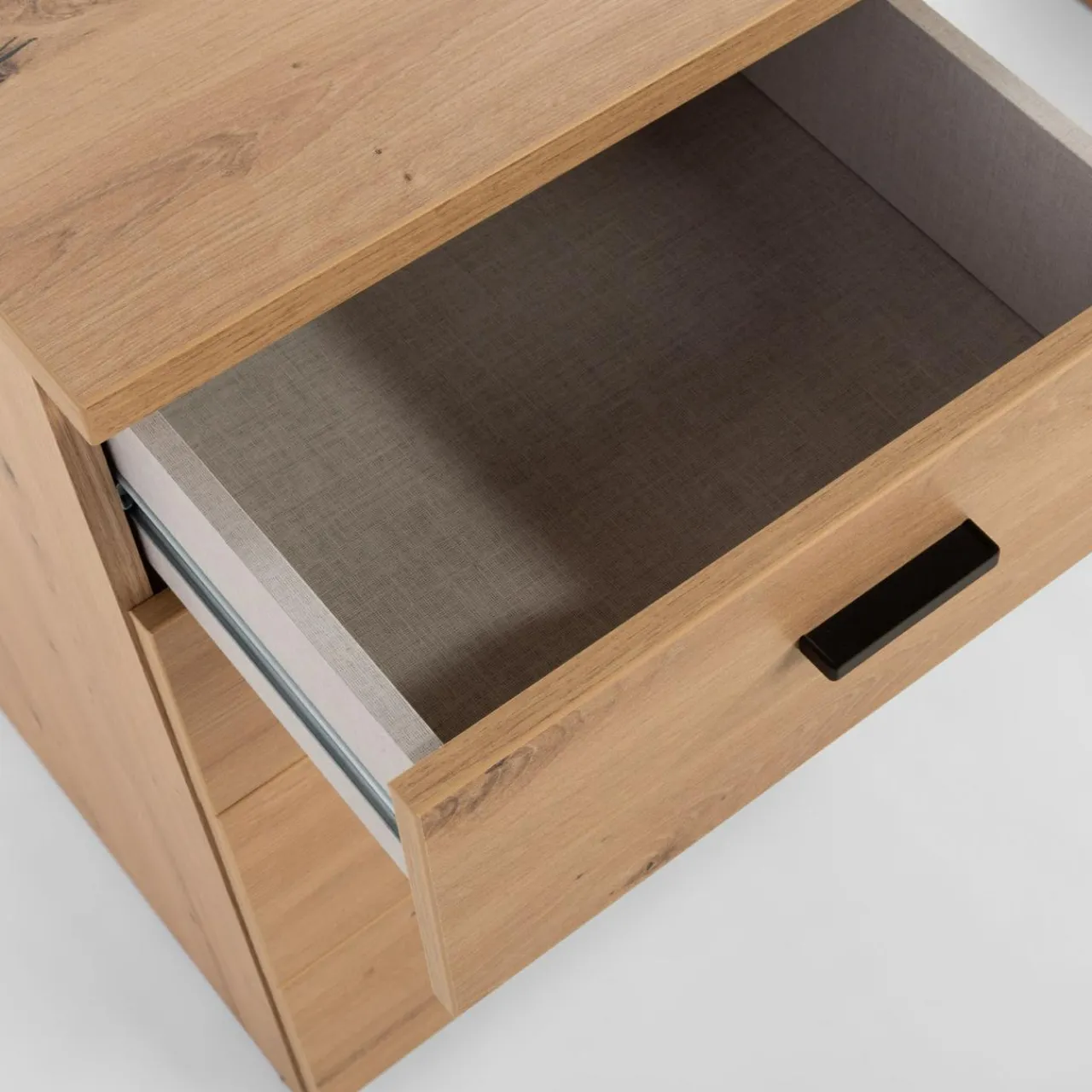 - Zabudowa tylna w wybarwieniu dębu artisan umożliwia postawienie biurka w dowolnym miejscu pomieszczenia.