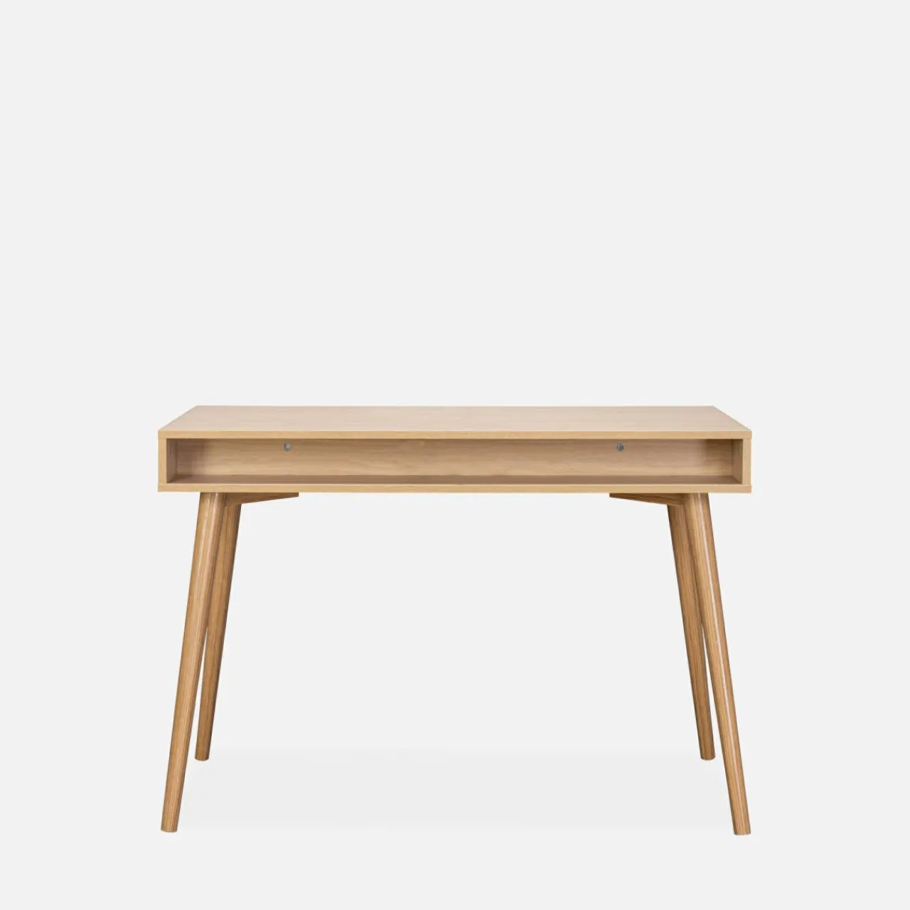 - Niewielka szerokość biurka, bo jedynie 110 cm sprawia, że zmieści się nawet w niedużych pokojach czy kawalerkach.