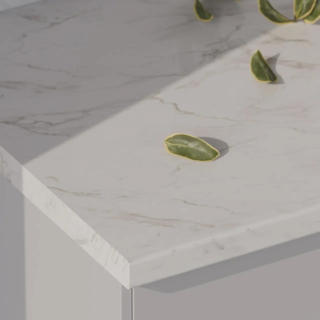 Dekor nawiązuje do krystalicznego wyglądu marmuru. Dominujący we wzorze biały kolor został ozdobiony szarymi żyłkami, które obrazują fakturę kamienia. Marmur crystal podkreśla modny, nowoczesny charakter kuchni i doskonale komponuje z ciepłym odcieniem jasnego drewna. Wykończenie blatu jest matowe i gładkie.