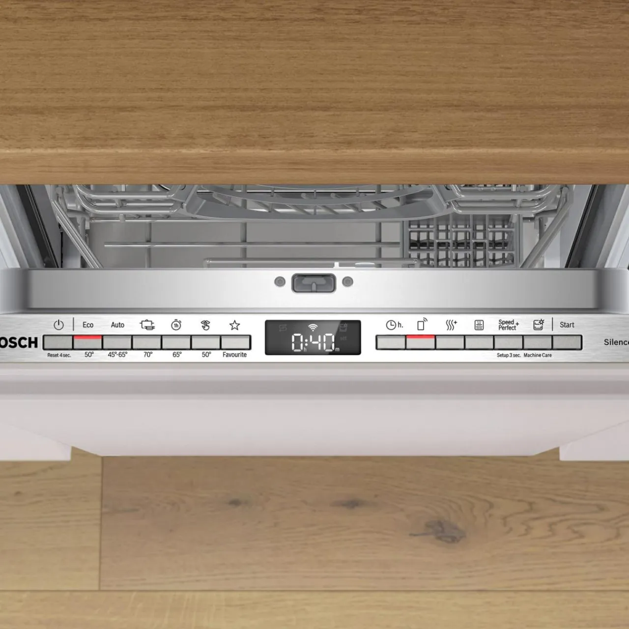 Napęd EcoSilence Drive™ odpowiada za wyjątkowo cichą i energooszczędną pracę zmywarki. Niezależnie od włączonego programu zmywarka BOSCH pracuje cicho i dyskretnie zapewniając spokój i komfort w domowym zaciszu.