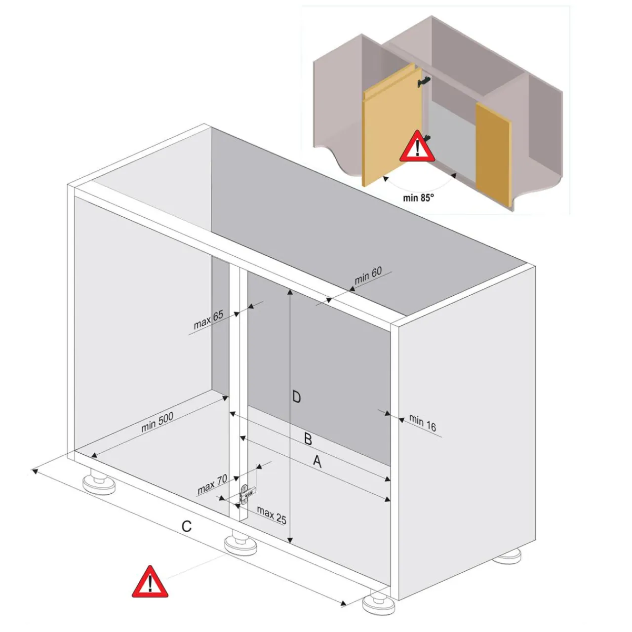 Wysokość światła szafki – 60-75 cm