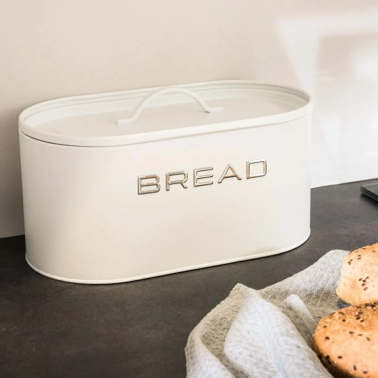 Chlebaki|inny Chlebak metalowy z pokrywą biały
