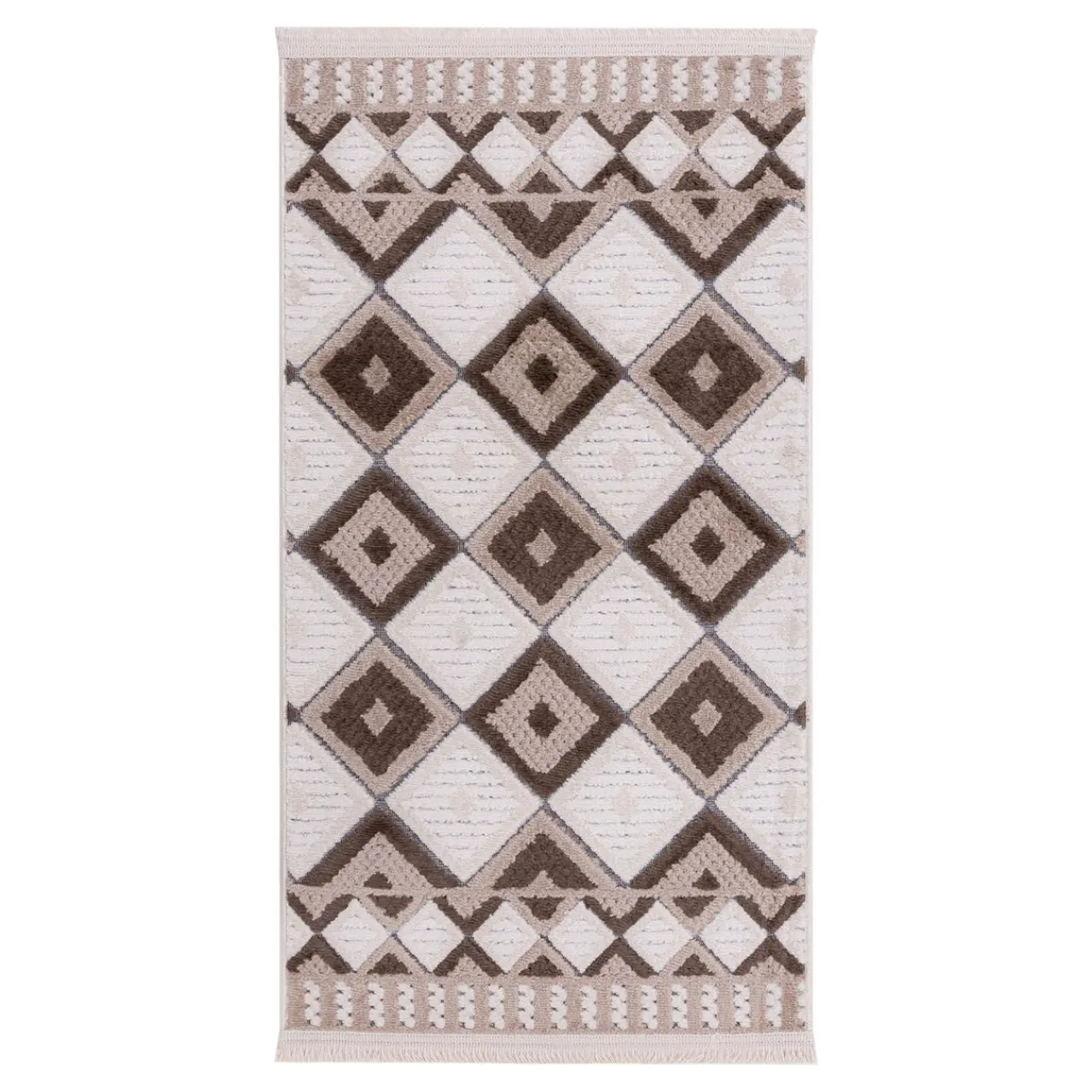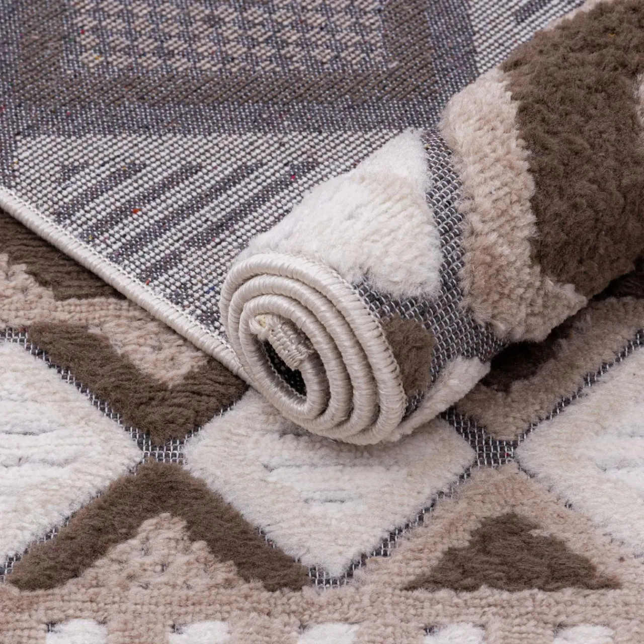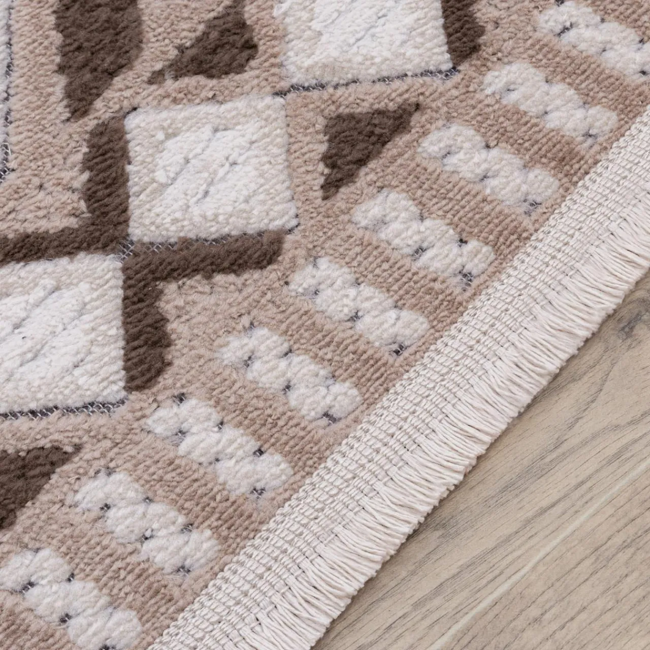 Dzięki wzorowi 3D na kremowym runie, dywanik doda Twojemu wnętrzu przytulnego charakteru.