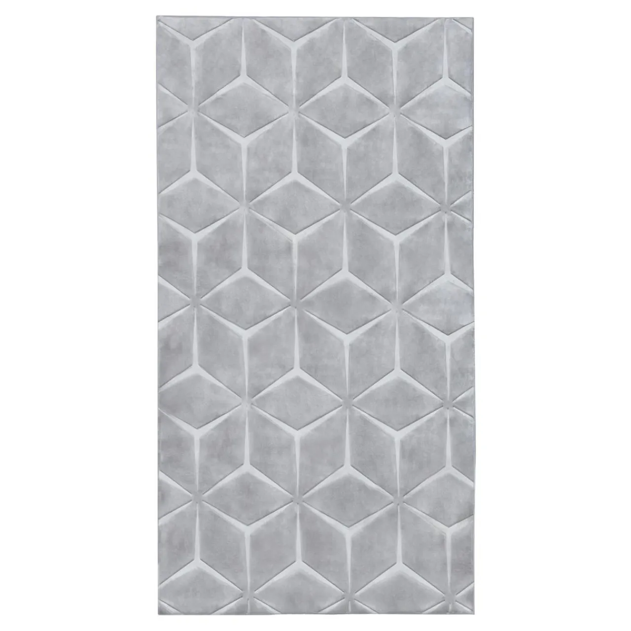 - Runo dywanu jest dwupoziomowe, dzięki temu powstaje ciekawy efekt 3 D. Geometryczny wzór jest wytłoczony w welurze. Światło będzie załamywało się na jego powierzchni w intrygujący sposób.