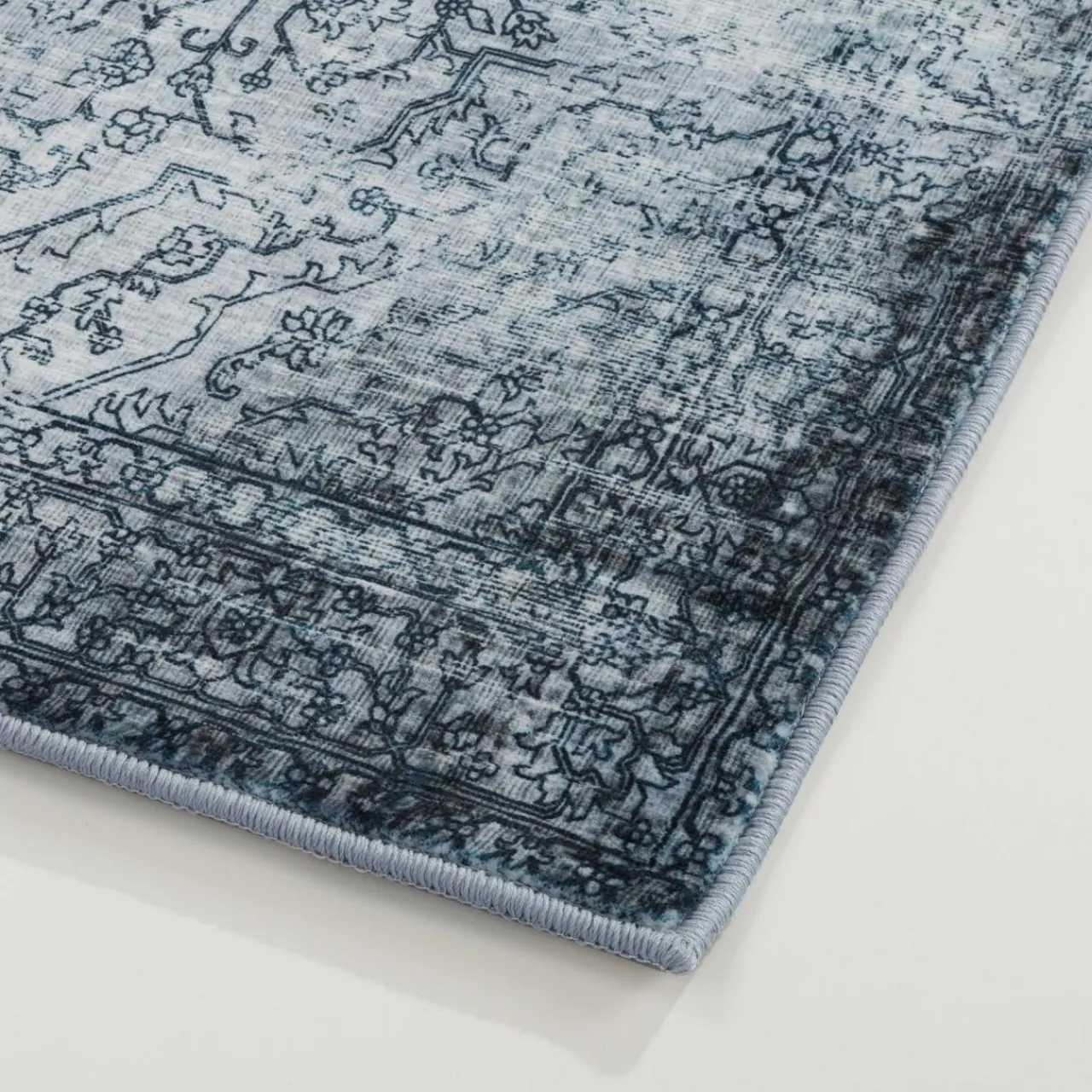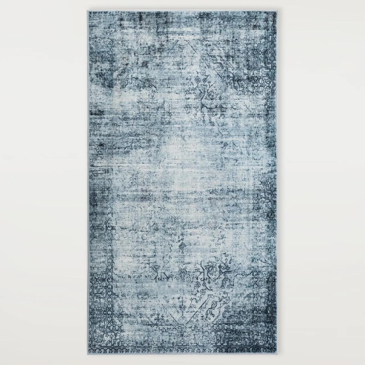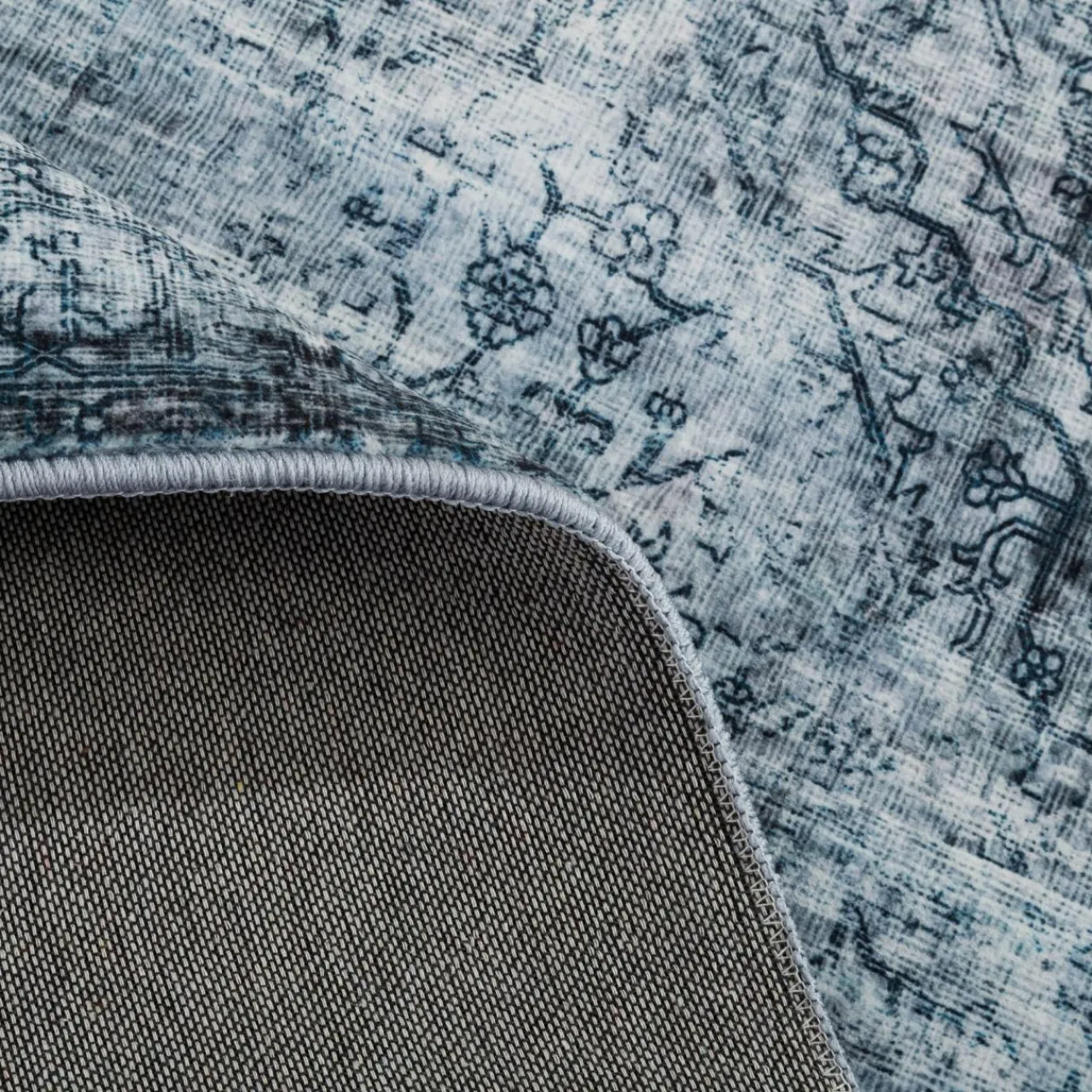 - Jeśli marzysz o tym, by zatopić się w stylistyce retro, ten dywan spełni Twoje oczekiwania. Wzór pokrycia podłogowego celowo stylizowany jest na stary. Świadczą o tym widoczne przetarcia. Ornament, wyłaniający się spod przetarć, ma roślinny charakter. Dywan osadzony jest w niebieskiej palecie barw.