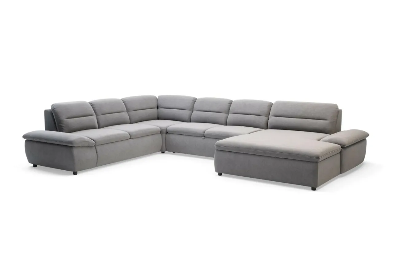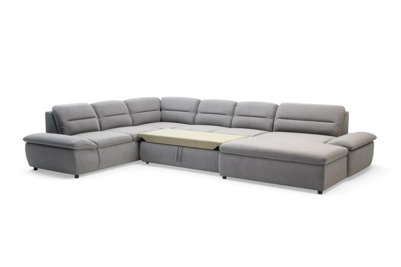 Dzięki zastosowaniu funkcji „delfin” narożnik TAURO NEW można łatwo rozłożyć. Wystarczy podnieść i wysunąć stelaż znajdujący się pod siedziskiem.