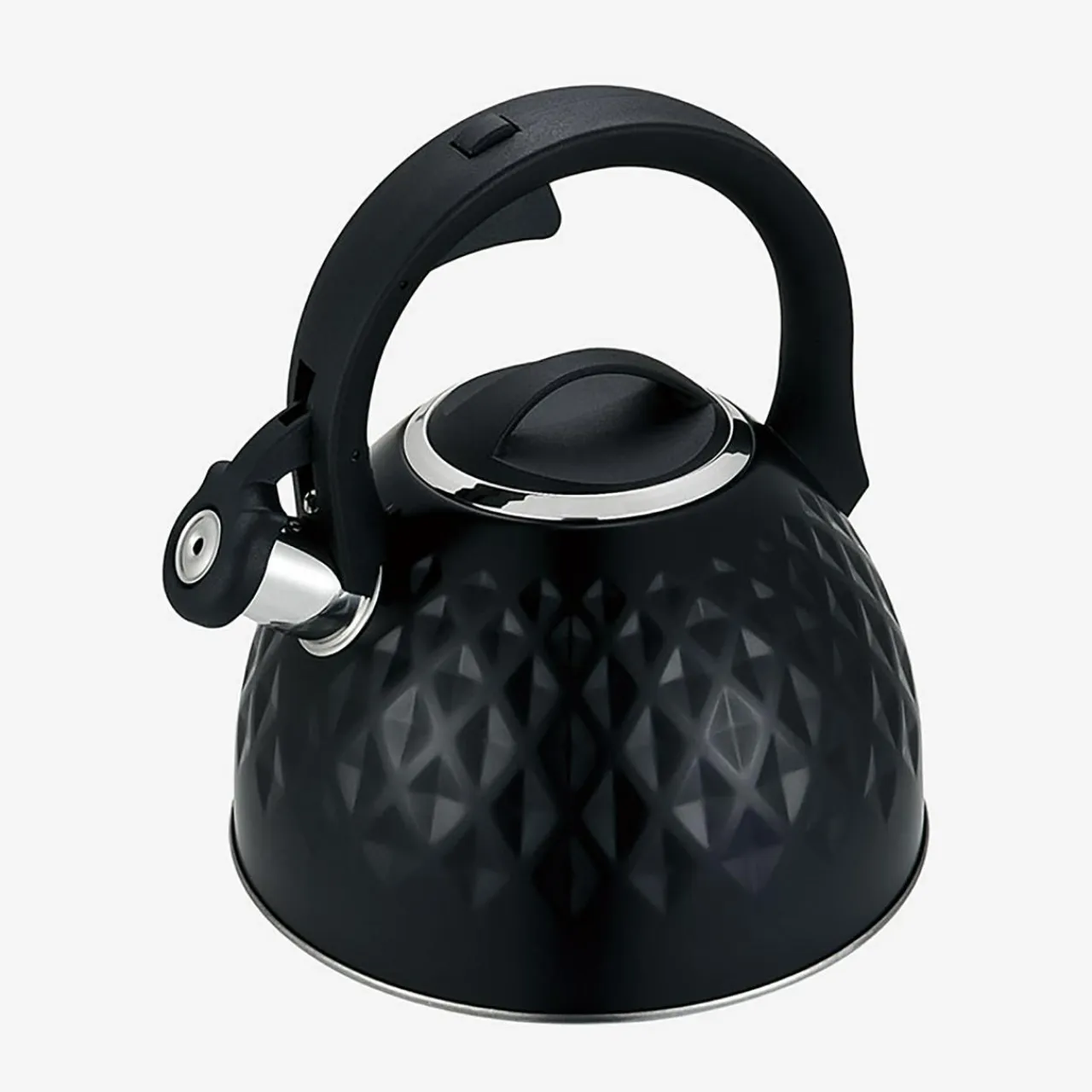 - Nylonowy uchwyt posiada przycisk, który podnosi i opuszcza gwizdek czajnika. Wygodnie zalejesz napar.