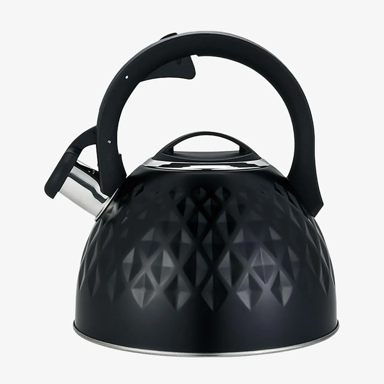 Czarny czajnik na indukcję o geometrycznym wzorze wygląda atrakcyjnie.