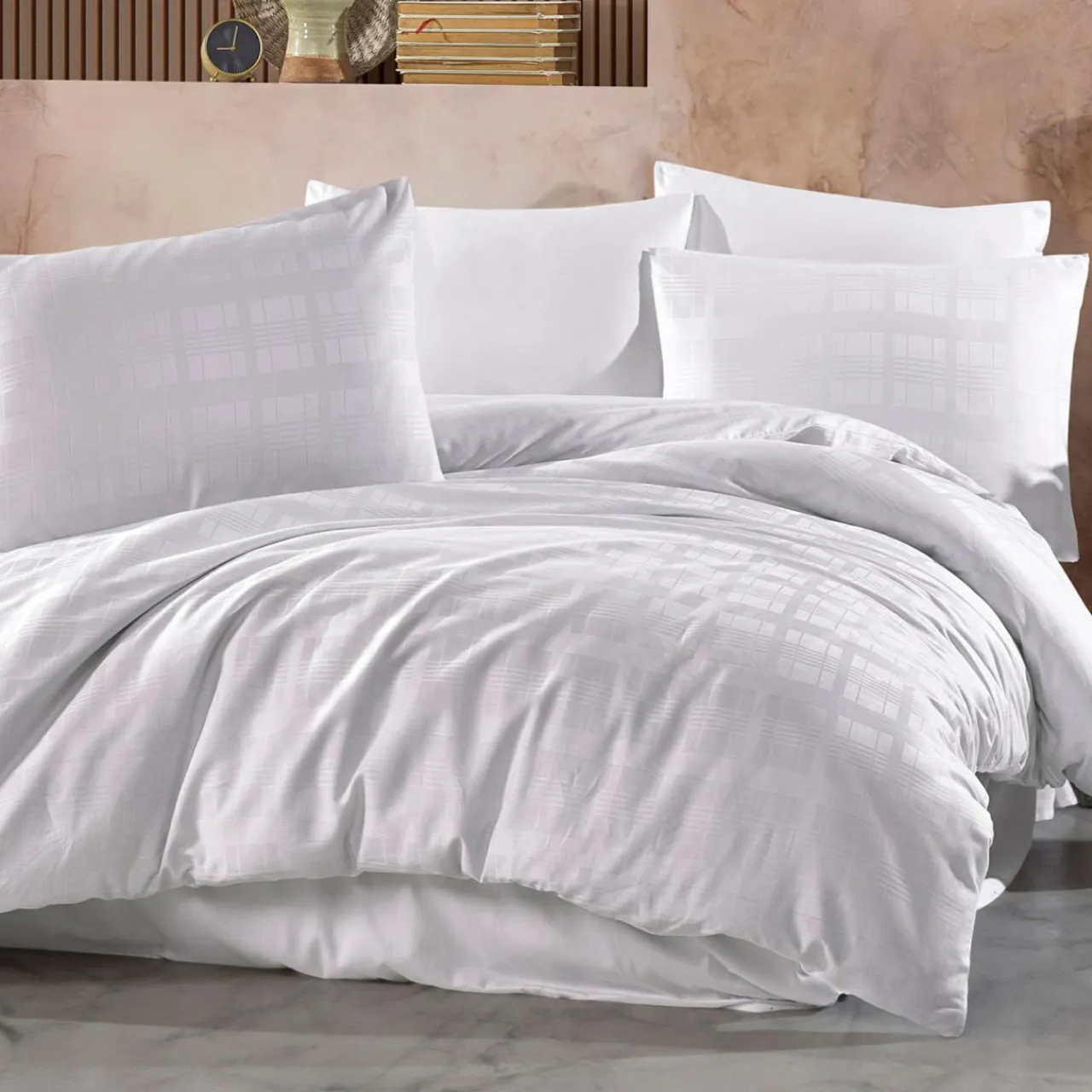 - Biała pościel z satyny bawełnianej doda świeżości i energii. Zaczniesz dzień z uśmiechem na twarzy.