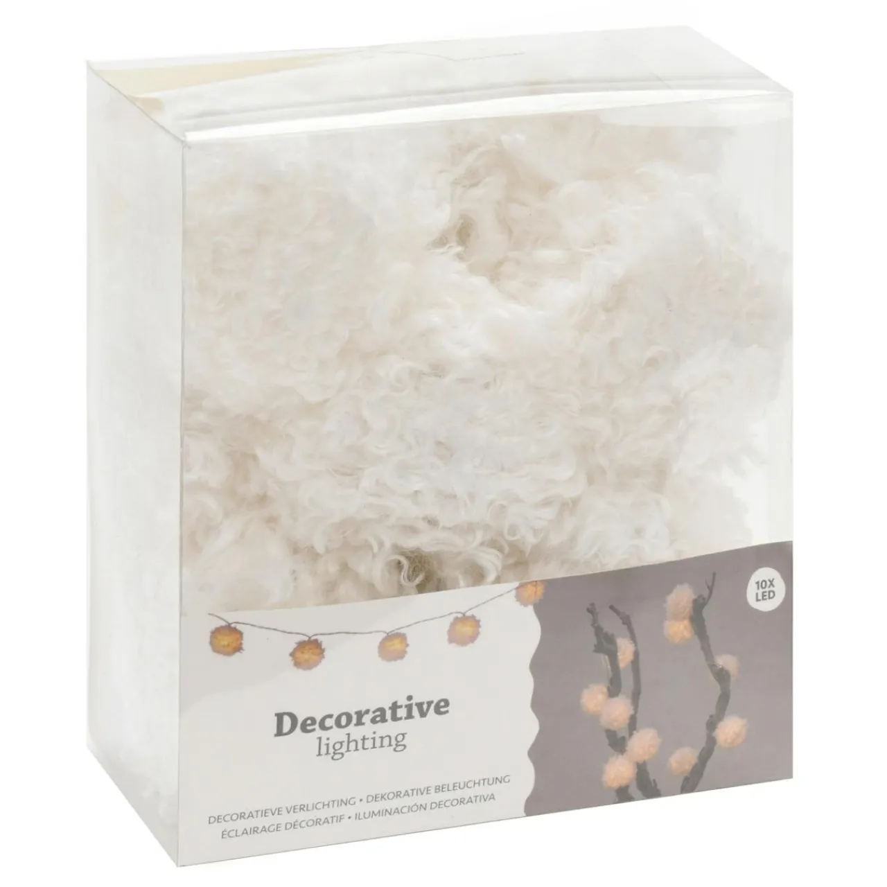 - 10 puszystych białych kulek LED o ciepłej barwie światła podkreśli przytulną aranżację.