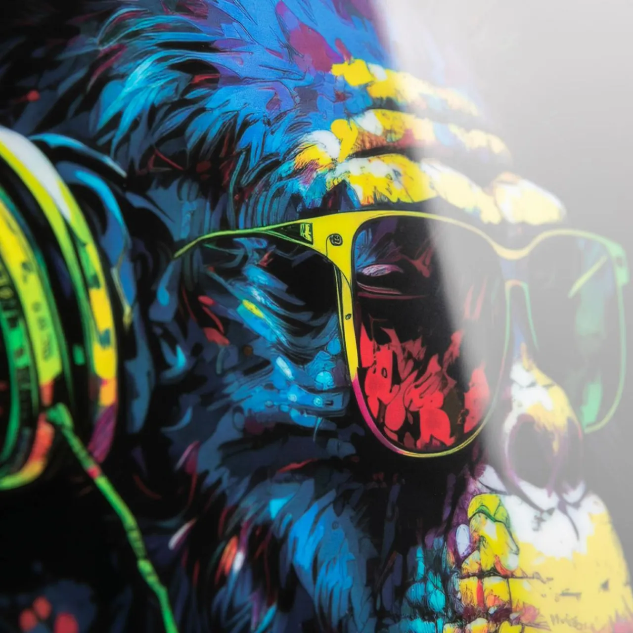 - Kolorowa grafika z małpą w słuchawkach przykuje uwagę i zaakcentuje Twoje zainteresowania.