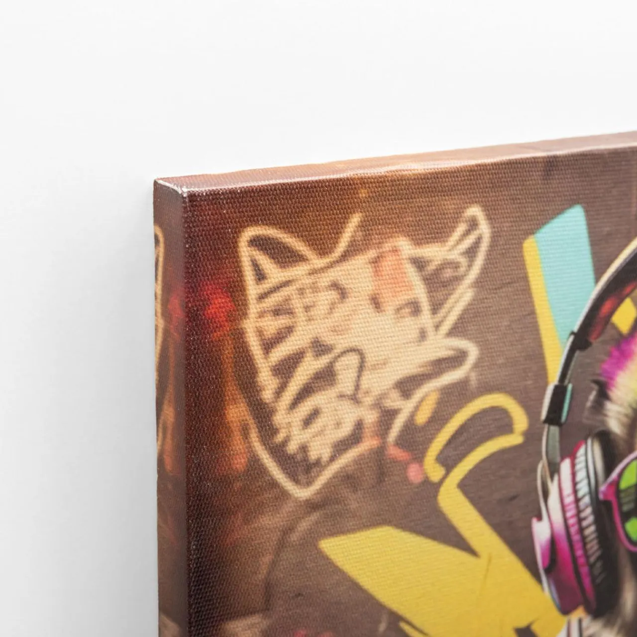 - Małpa w słuchawkach i okularach trafi w gust miłośnika muzyki i kolorowych dekoracji.