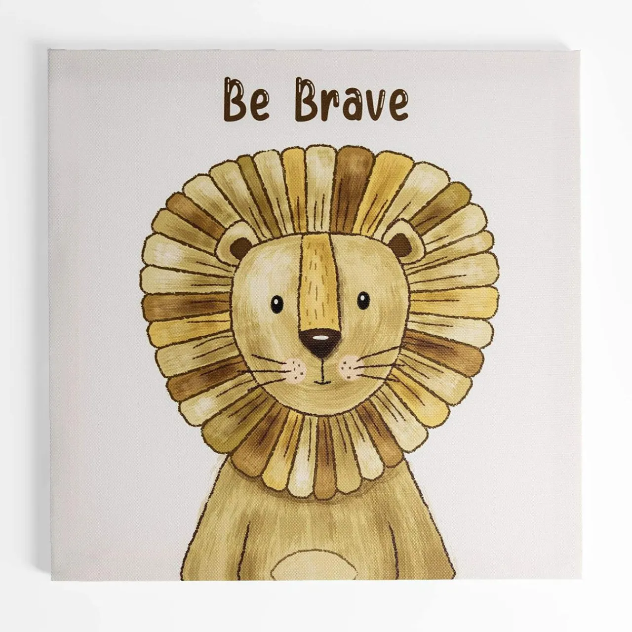 Dodaj dziecięcej sypialni więcej uroku – obraz dla dziecka z grafiką lwa z napisem: „be brave” spodoba się najmłodszym miłośnikom dzikich zwierząt.