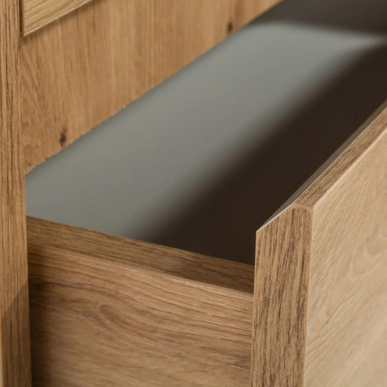 Naturalny dekor dębu artisan wprowadzi przytulny klimat do wnętrza. Pozwoli również łatwo dopasować komodę do innych mebli w pomieszczeniu.
