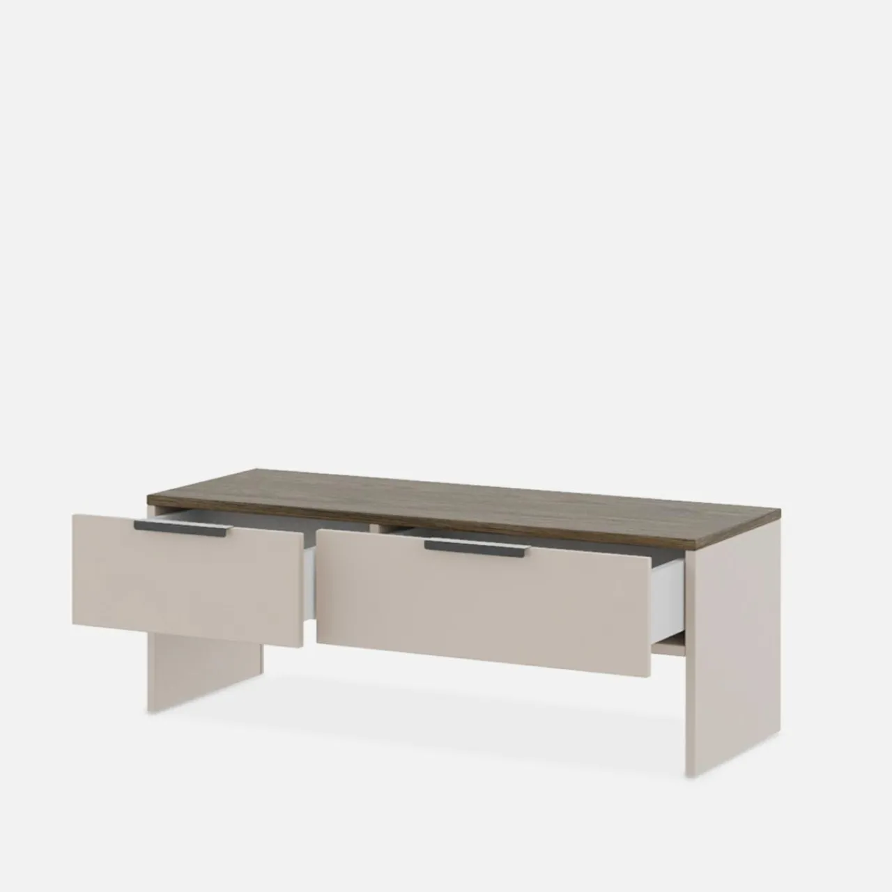 - Meble w odcieniu stone grey to delikatny, beżowy odcień. W połączeniu z ciemnymi elementami w odcieniu dębu windmill stworzą ciepłe i nowoczesne wnętrze.