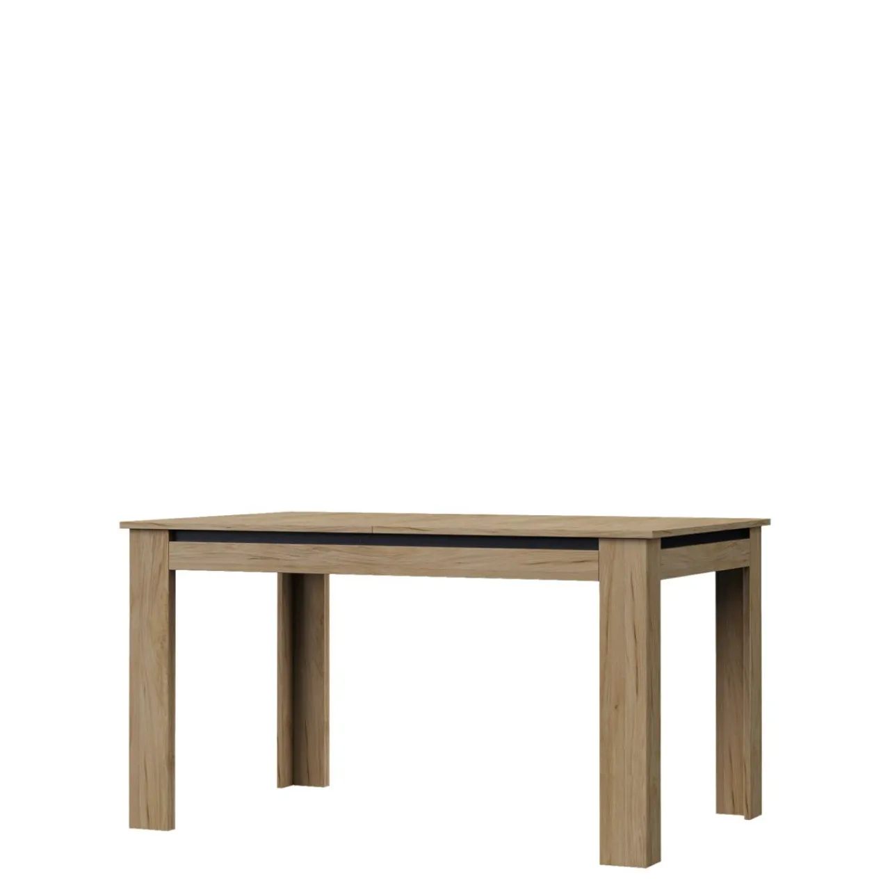 Stół jest elementem ciekawej kolekcji GAYA, charakteryzującej się harmonijnym połączeniem efektu drewna z czarnymi wstawkami.