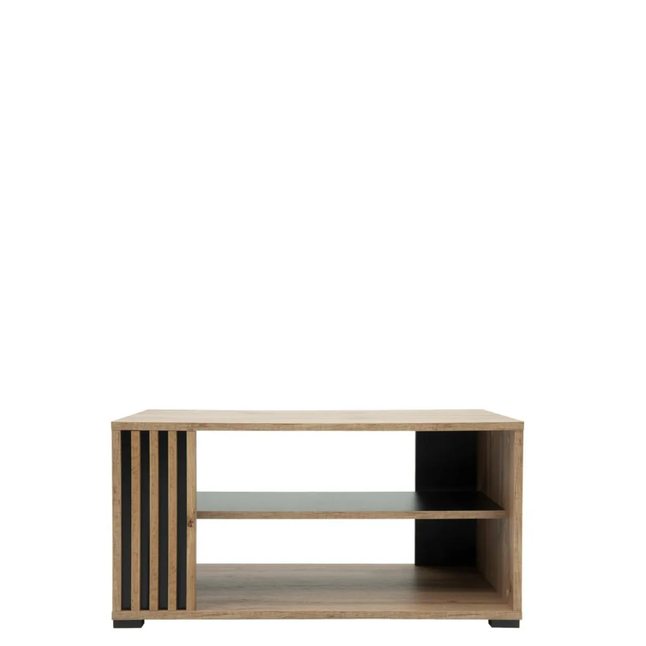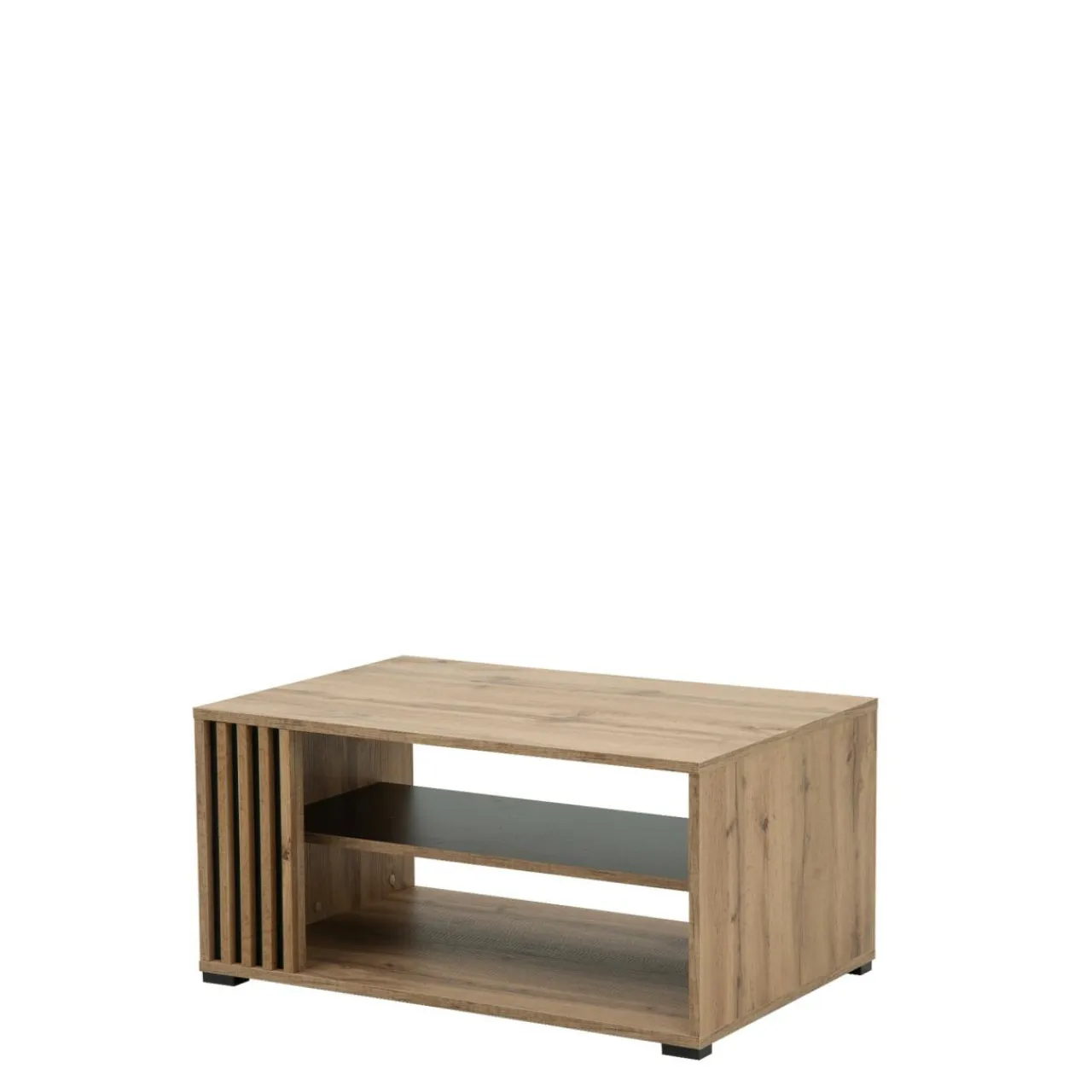 - Ciepły kolor dębu wotan, czarne, minimalistyczne elementy wykończenia i ozdobne lamele – całość prezentuje się elegancko i sprawi, że Twój salon wypełni współczesny design.