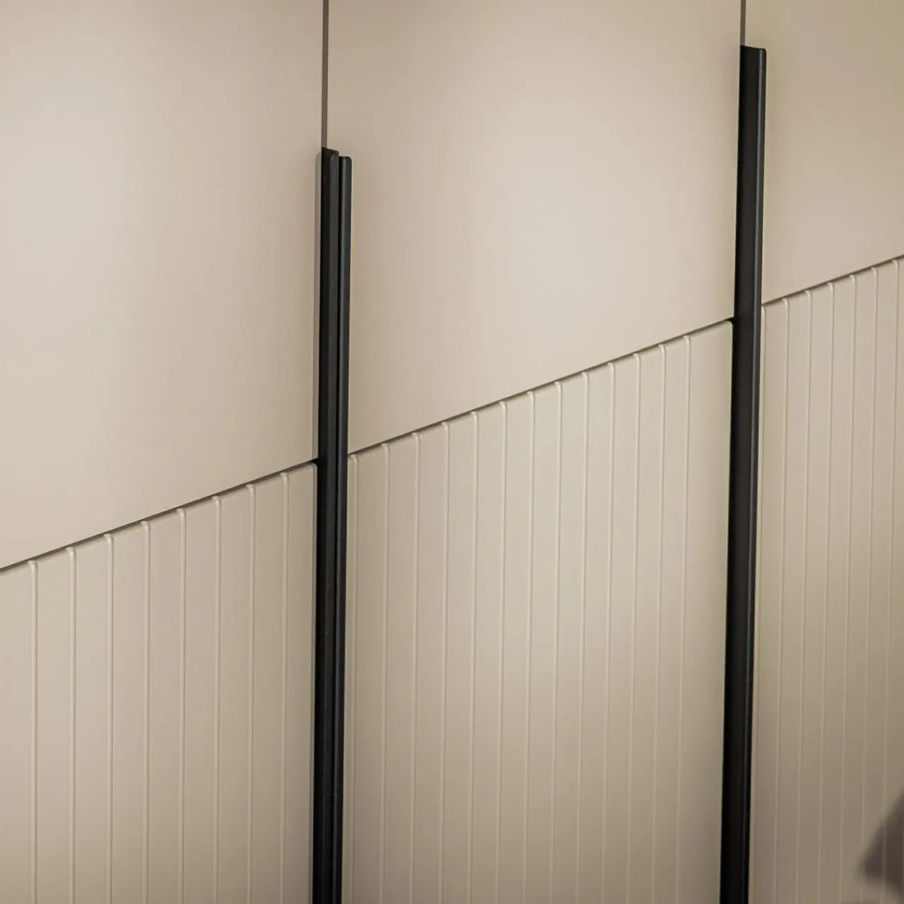 - Długie, metalowe uchwyty wykończone w ciemnym kolorze optycznie wydłużą pomieszczenie.
