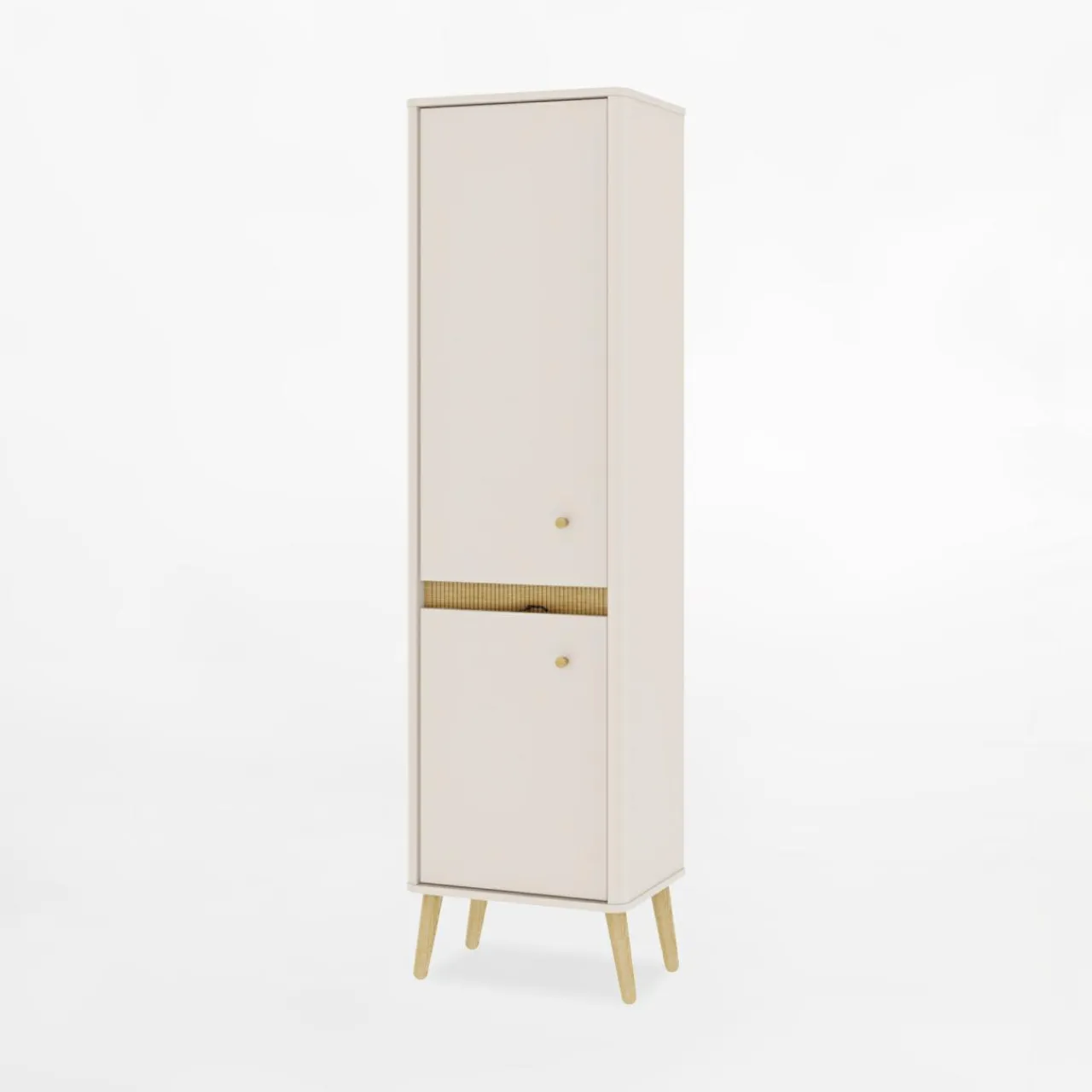 Szafa z kolekcji Lorena to mebel o subtelnej i eleganckiej stylistyce. Wykonana w nowoczesnym stylu, łączy w sobie estetykę oraz praktyczne rozwiązania, które świetnie sprawdzą się zarówno w salonie, przedpokoju, jak i sypialni. Delikatny odcień kaszmiru w połączeniu z nóżkami w kolorze dębu nadaje szafie lekkości i wprowadza do wnętrza przytulny klimat.