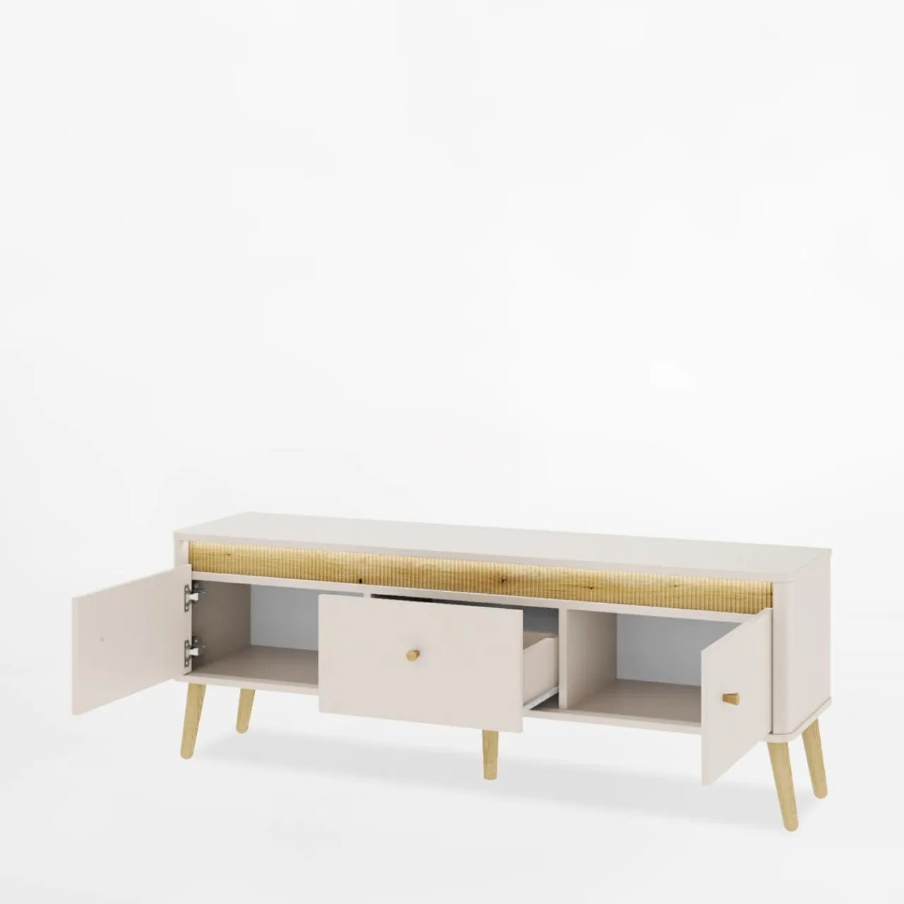 Zorganizuj stylowy kącik multimedialny w swoim salonie z szafką RTV z kolekcji Lorena. Nowoczesny design oraz elegancki kolor kaszmiru, że mebel doskonale wpisuje się w przestrzenie urządzone w stylu minimalistycznym lub skandynawskim.