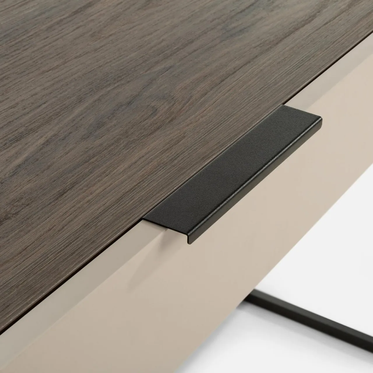 - Meble w odcieniu stone grey to delikatny, beżowy odcień. W połączeniu z ciemnymi elementami w odcieniu dębu windmill stworzą ciepłe i nowoczesne wnętrze.