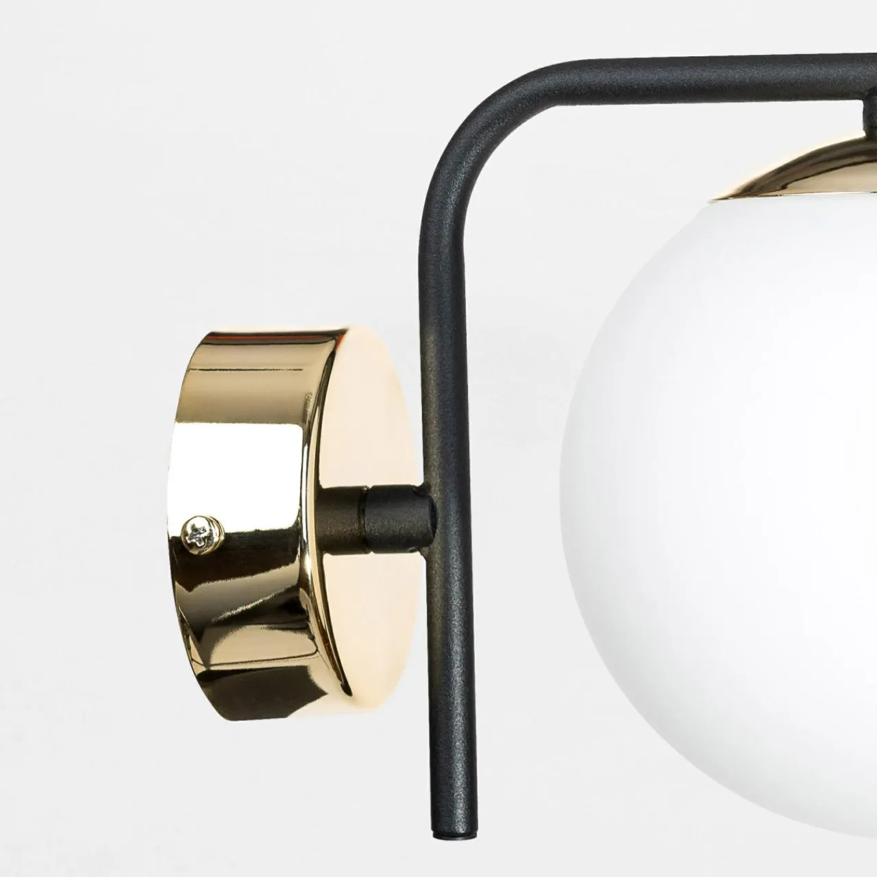 - Połyskujące złote elementy doskonale korespondują z czarnym, matowym wykończeniem ramion i meblami w odcieniach szarości, czerni i bieli.