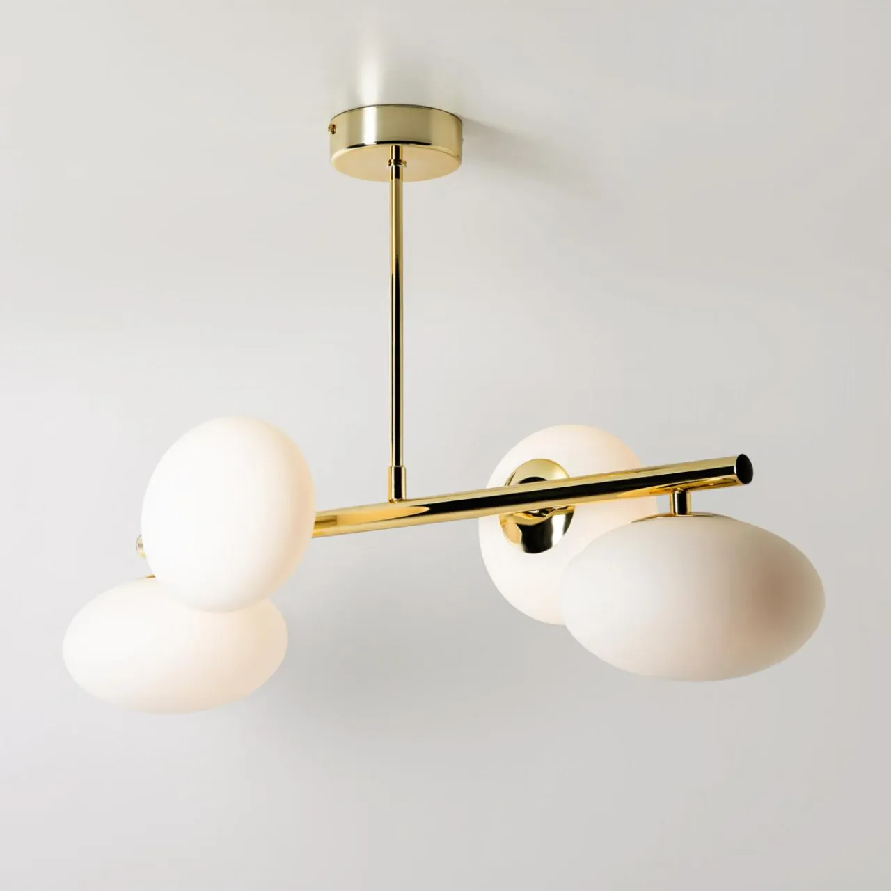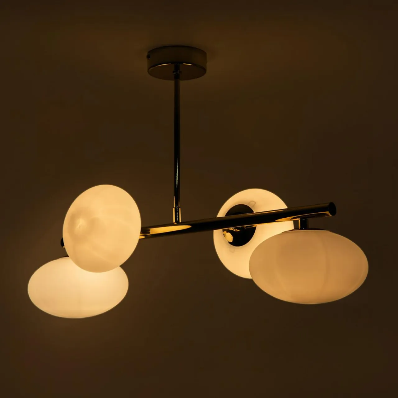 Posiada ona 4 rozłożyste ramiona zakończone mlecznobiałymi owalnymi kloszami.