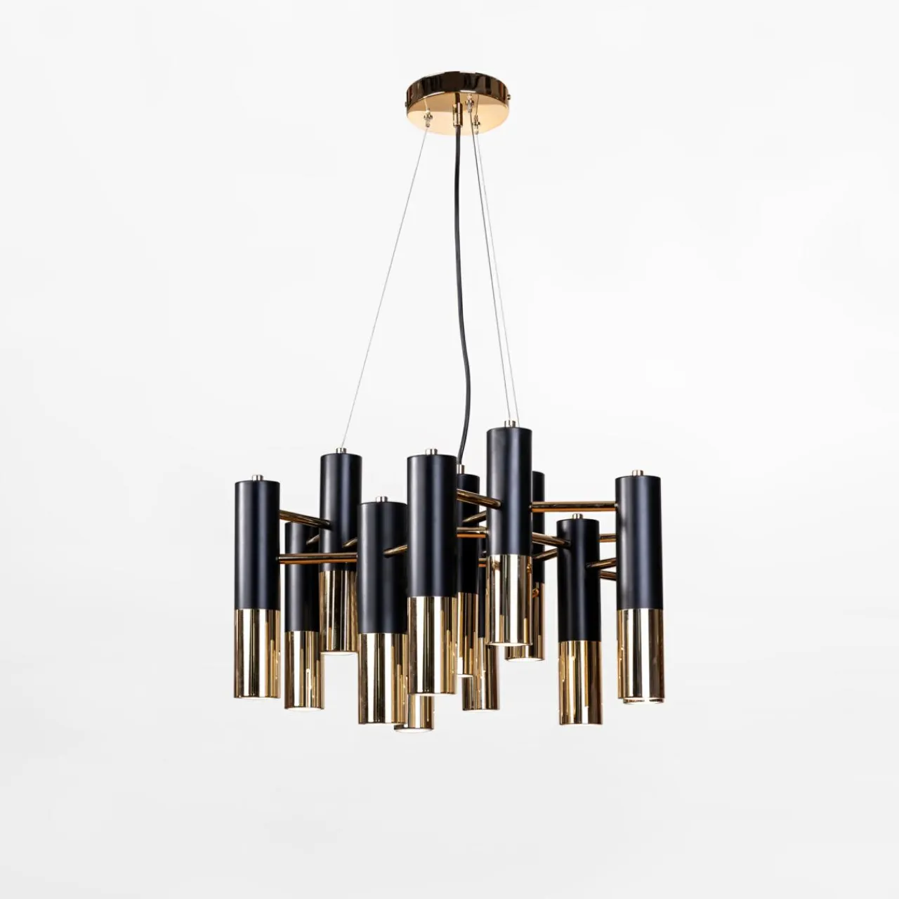 Jej czarno-złota kolorystyka oraz niespotykany design tworzą ciekawe oświetlenie dla wnętrza salonu lub jadalni.