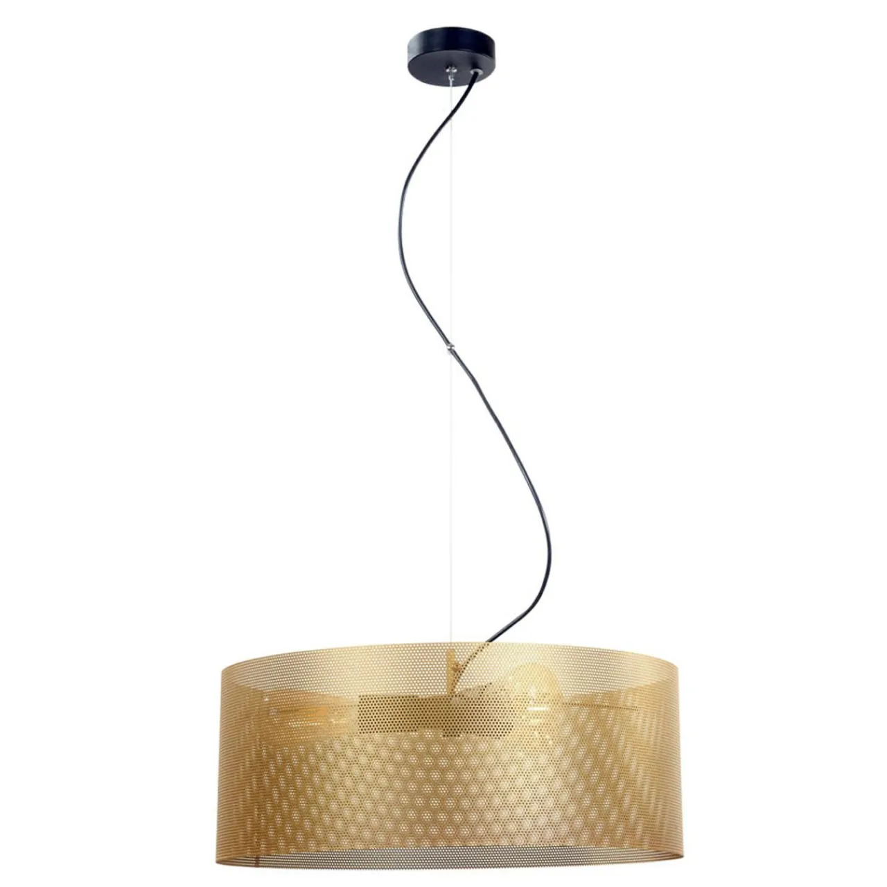 Jest nieodłączną częścią aranżacji salonu lub jadalni, abażur o średnicy 50 cm mieści 3 żarówki, które rozświetlają jasnym światłem przestrzeń w całym pomieszczeniu.
