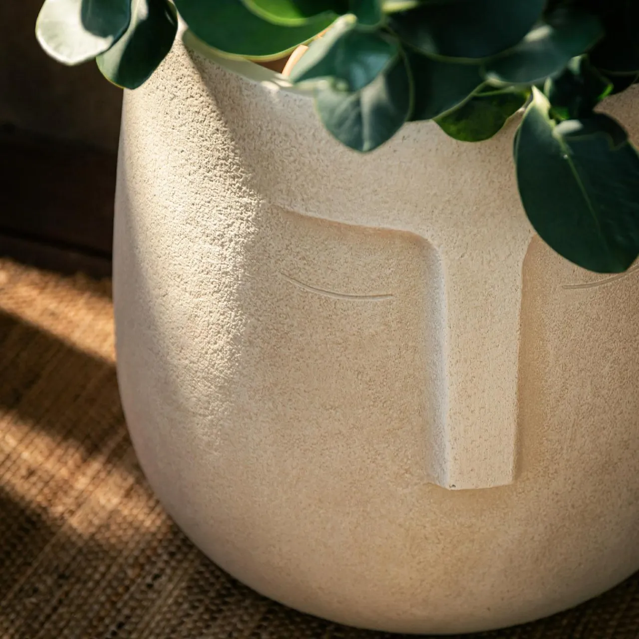 Balkon, taras, ogród – to zielone przestrzenie, które zyskają na atmosferze, jeśli wprowadzisz do aranżacji florystycznej niebanalne dodatki. Beżowa donica z motywem twarzy będzie stanowić niezwykłą ozdobę Twojej zielonej oazy spokoju.