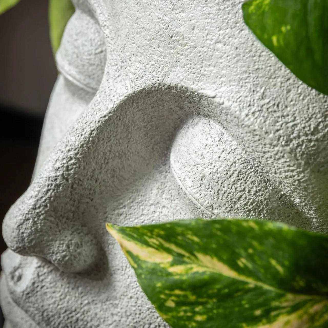 Dodaj świeżości i subtelnego stylu do swojego wnętrza lub ogrodu dzięki białej donicy w kształcie twarzy. Jej wyjątkowy design i kolor sprawiają, że doskonale wpisuje się w nowoczesne i minimalistyczne aranżacje.