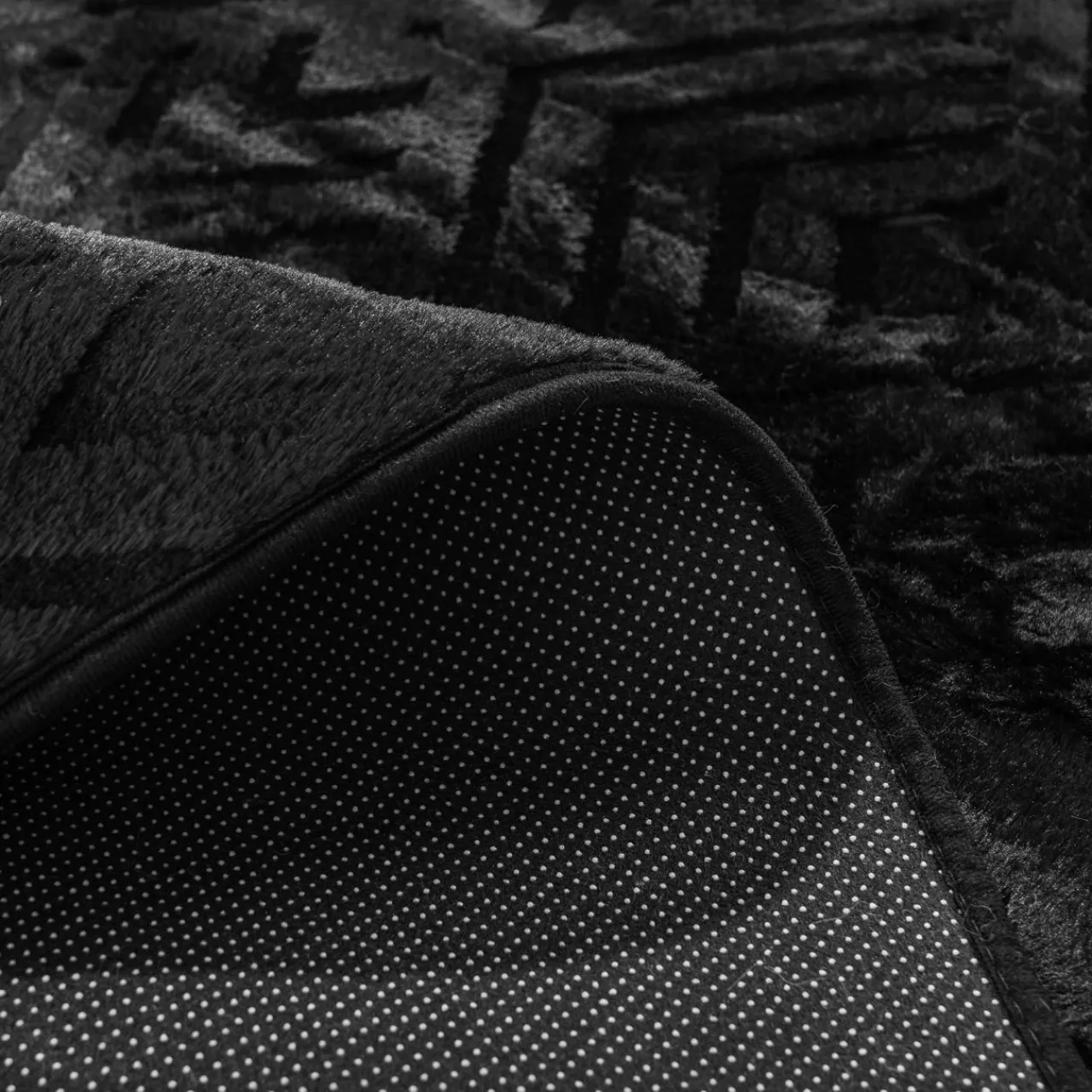 Marzy Ci się stworzenie przytulnej atmosfery we wnętrzu? Pomoże Ci w tym czarny dywan DOVER z geometrycznym tłoczeniem. Zachwyci Cię unikalną fakturą 3D i miękkim w dotyku runem.