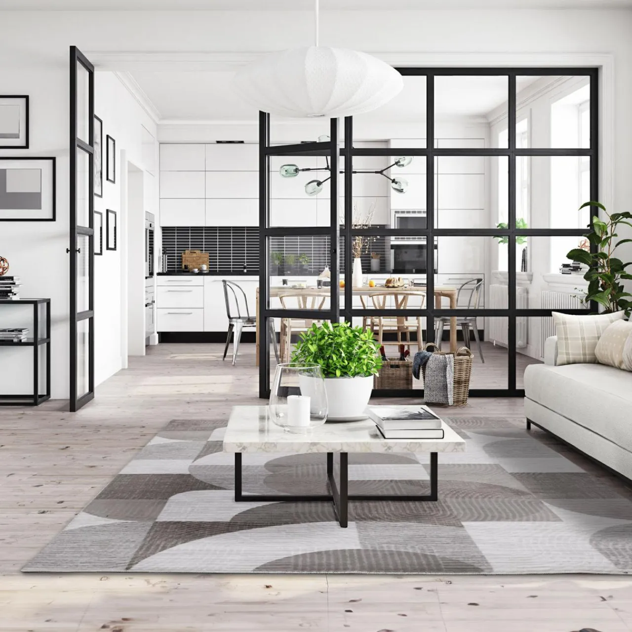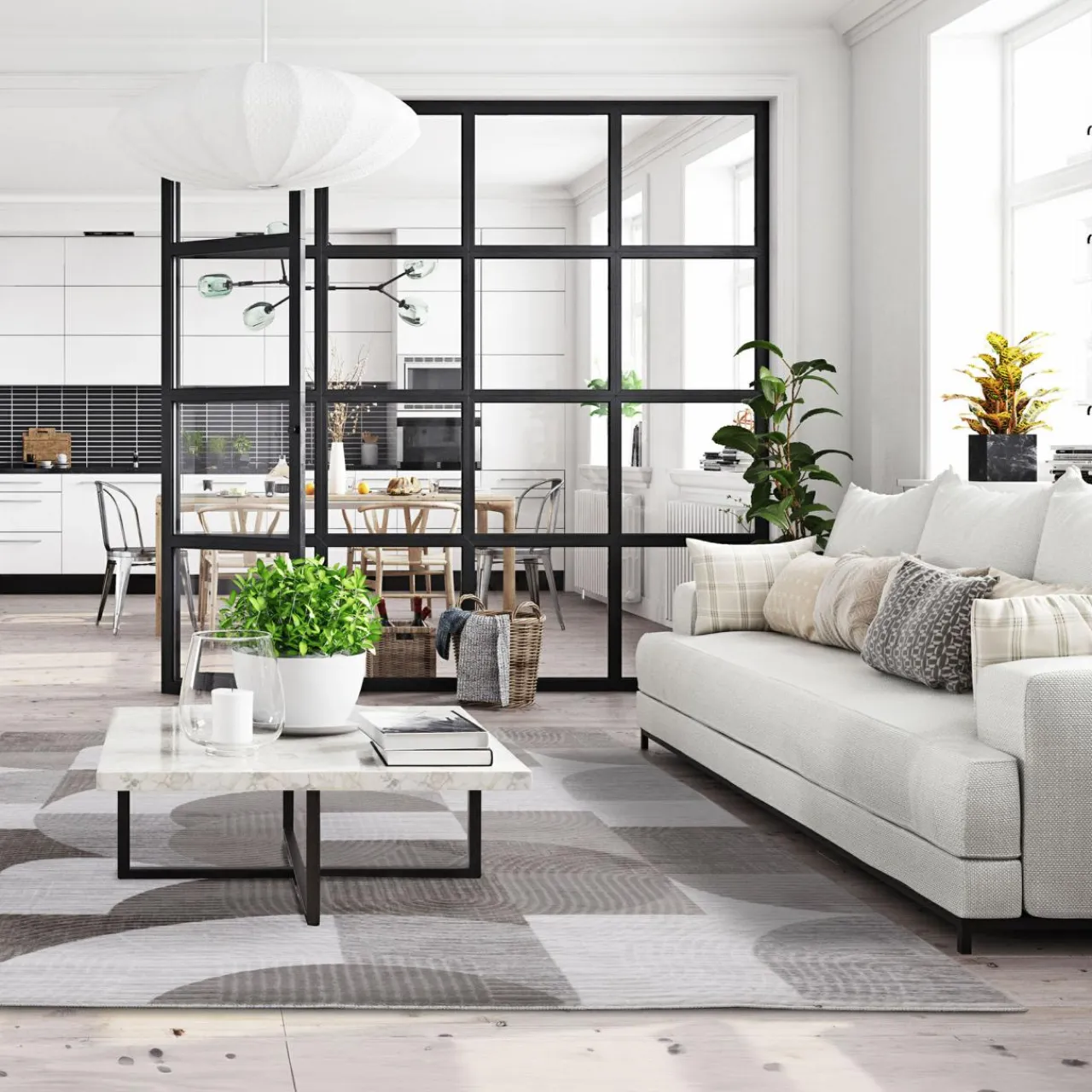- Łagodne, łukowate wzory złagodzą linie w aranżacji i sprawią, że salon stanie się bardziej przytulny.