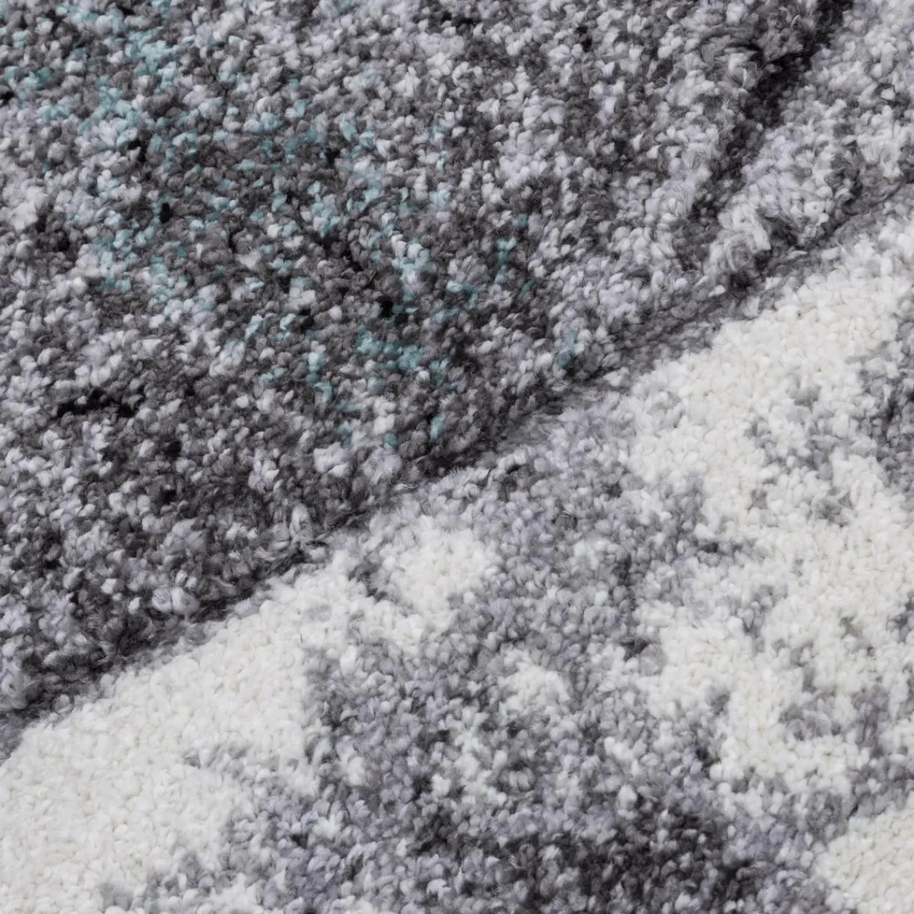 Wśród szarych i białych wzorów dostrzeżesz subtelne, turkusowe włókna.