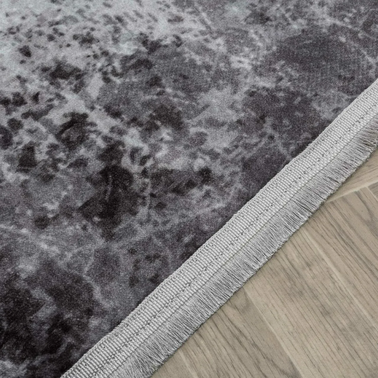 - Wzór dywanu przypomina ciemny marmur ze srebrnymi przebarwieniami oraz żyłkami.