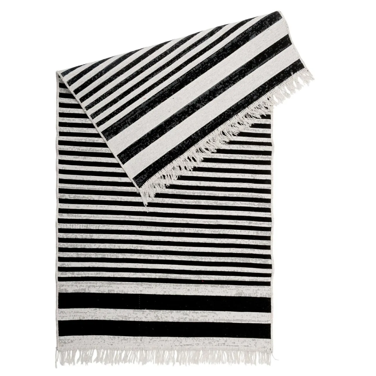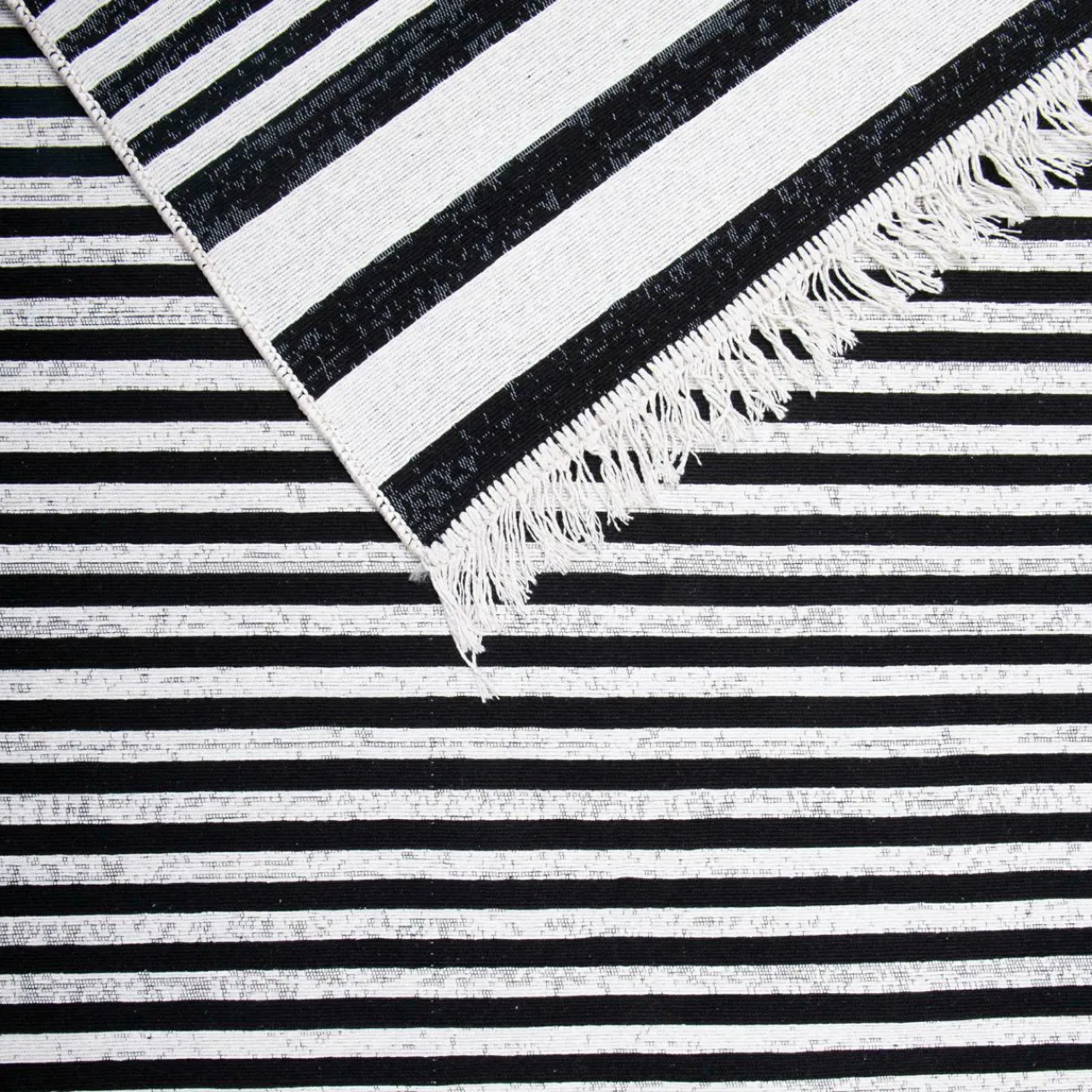 - Dywan BERGEN jest dwustronny – z jednej strony przeważają pasy czarne, z drugiej białe.