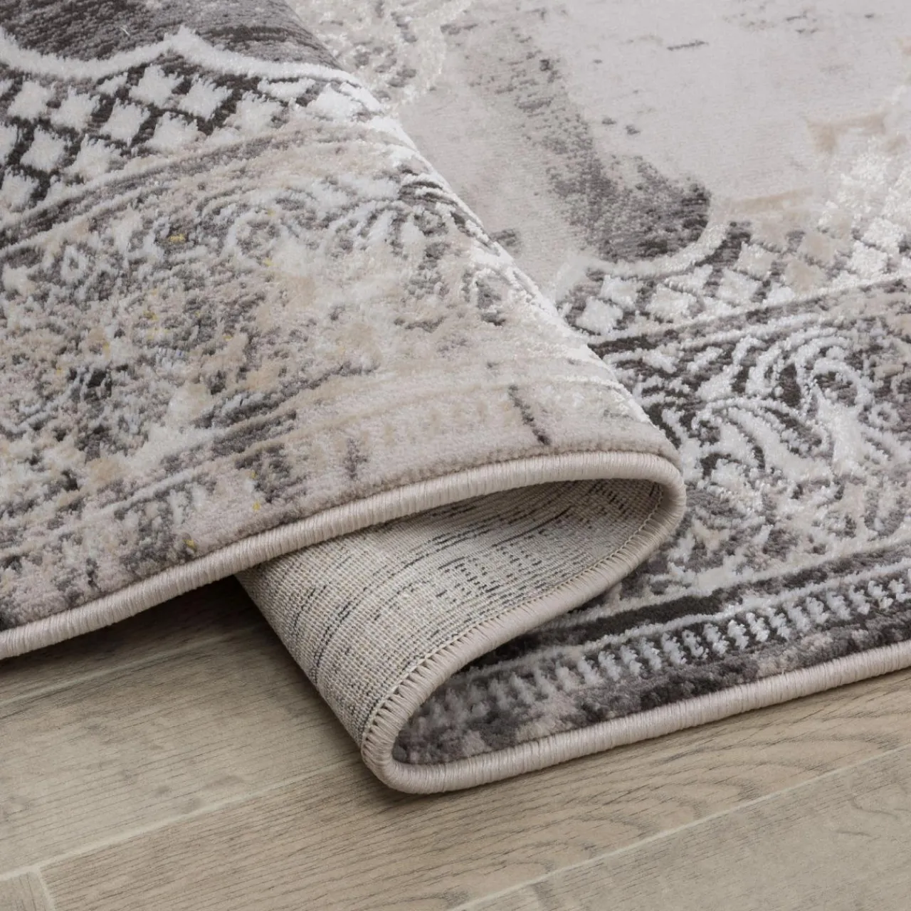 Szary kolor dywanu ALMERA sprawia, że z powodzeniem położysz go zarówno w nowoczesnym wnętrzu, jak i w tym industrialnym, czy retro.