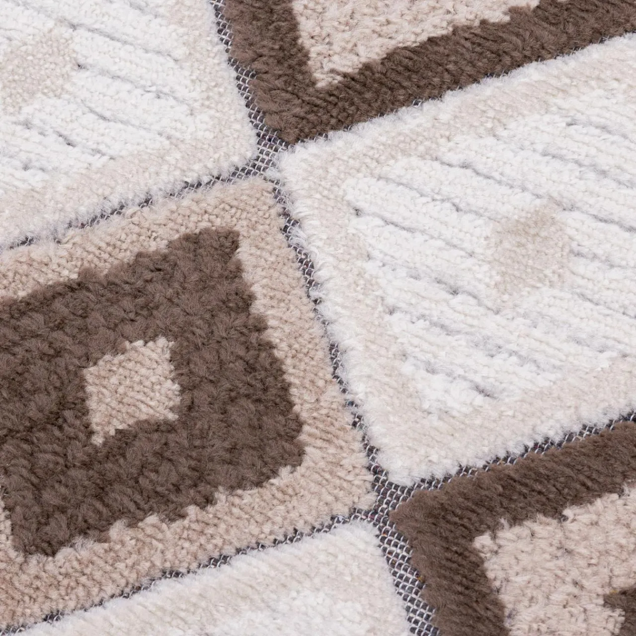 Dzięki wzorowi 3D na kremowym runie, dywanik doda Twojemu wnętrzu przytulnego charakteru.