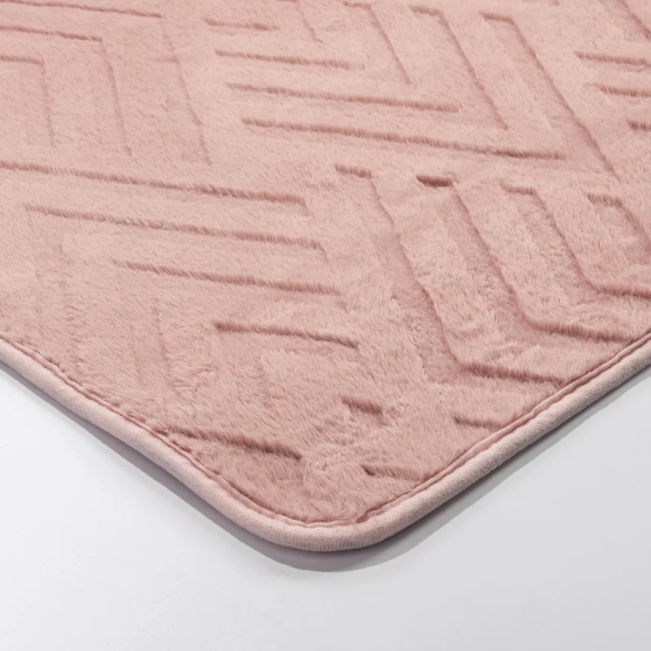 Marzy Ci się stworzenie przytulnej atmosfery we wnętrzu? Pomoże Ci w tym różowy dywanik DOVER z geometrycznym tłoczeniem. Zachwyci Cię unikalną fakturą 3D i miękkim w dotyku runem.